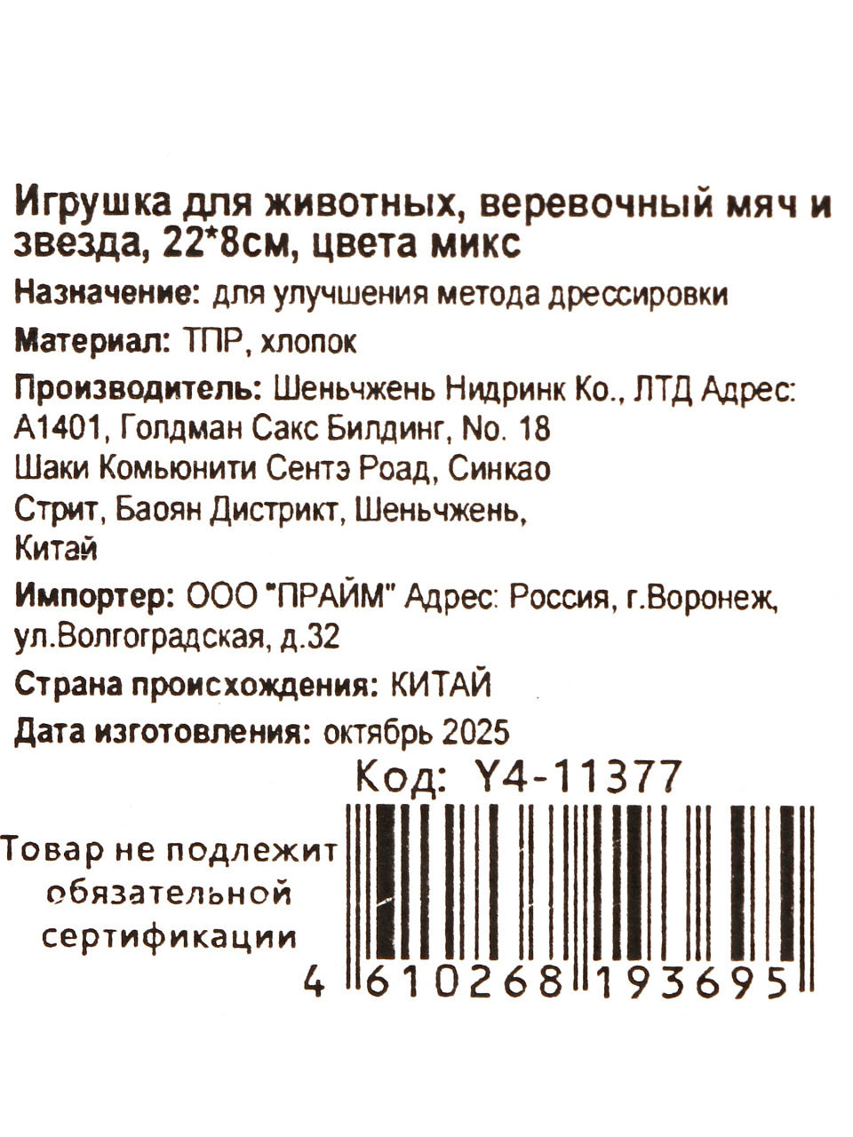 Вы можете приобрести «Игрушка для животных веревочный мяч и звезда, 22х8 см, в ассортименте, Y4-11377» и другие товары в нашем интернет-магазине в Россоши по низким ценам и с бесплатным самовывозом.