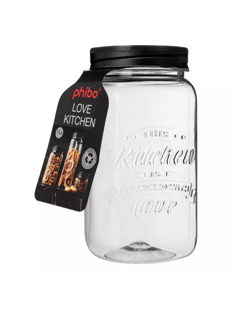 Представляем стильное решение для вашей кухни — банка пластик 1.4 л с крышкой и эмбоссингом от бренда Бытпласт. Эта модель из коллекции Love Kitchen станет идеальным дополнением интерьера, добавляя нотку элегантности благодаря своему черному цвету.