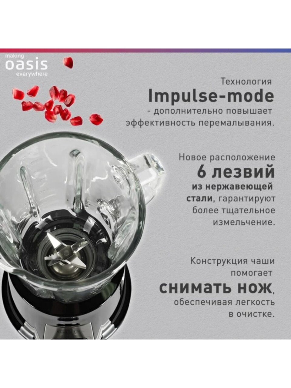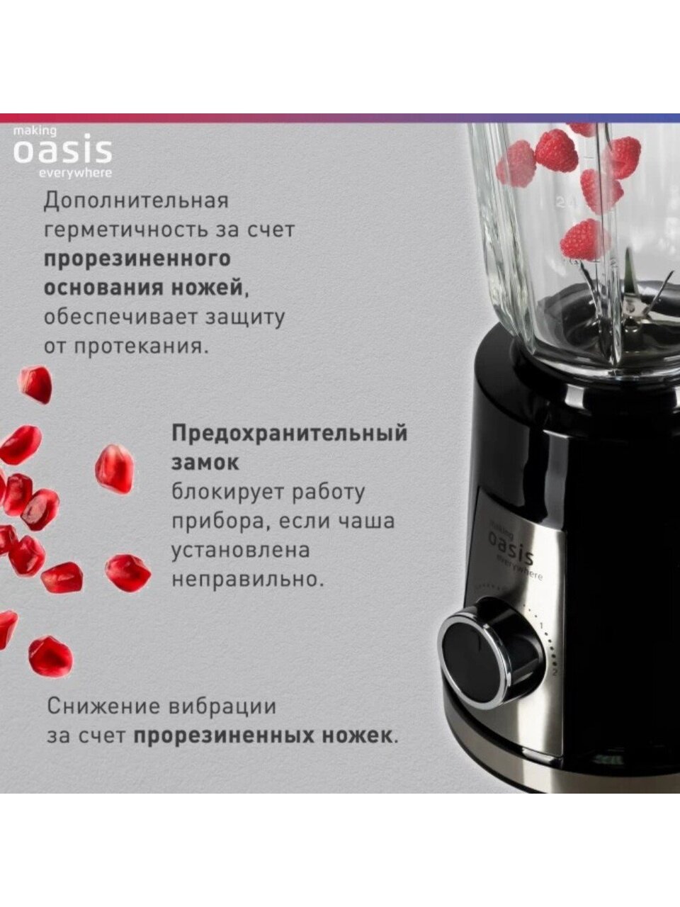 Стационарный блендер Oasis ST-120B – это сочетание высокой производительности и современного дизайна, что делает его отличным выбором для тех, кто ценит качество и стиль. Благодаря своей мощности и функциональности, он легко справится с приготовлением разнообразных блюд, помогая экономить время и силы. Приобретая этот блендер, вы получаете надежного помощника, который сделает процесс приготовления пищи более приятным и эффективным.