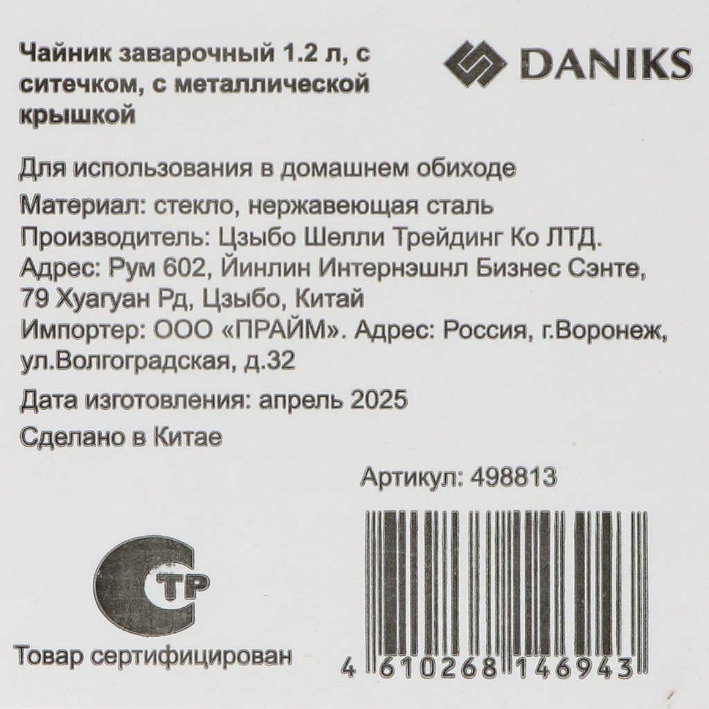 Вы можете приобрести «Чайник заварочный стекло, 1.2 л, с ситечком, с металлической крышкой, Daniks, TP1200S» и другие товары в нашем интернет-магазине в Тамбове по низким ценам и с бесплатным самовывозом.