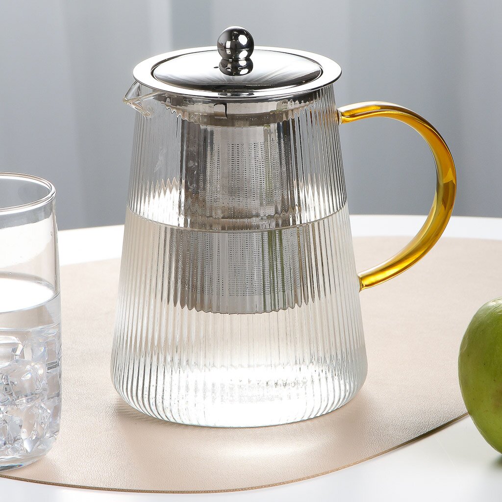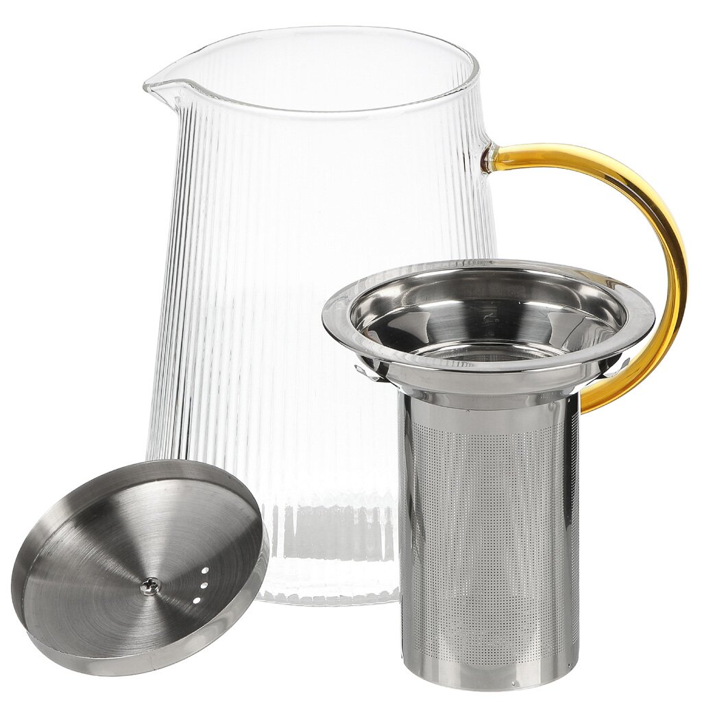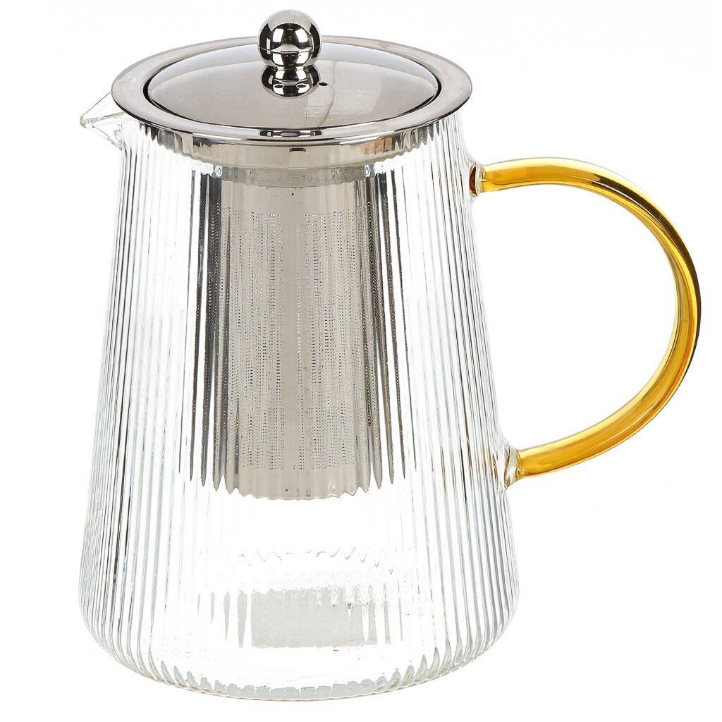 Стильный стеклянный заварочный чайник Daniks 1.2 л с металлическим ситечком: чистый вкус чая, долговечность, идеальный подарок и для уютных встреч.