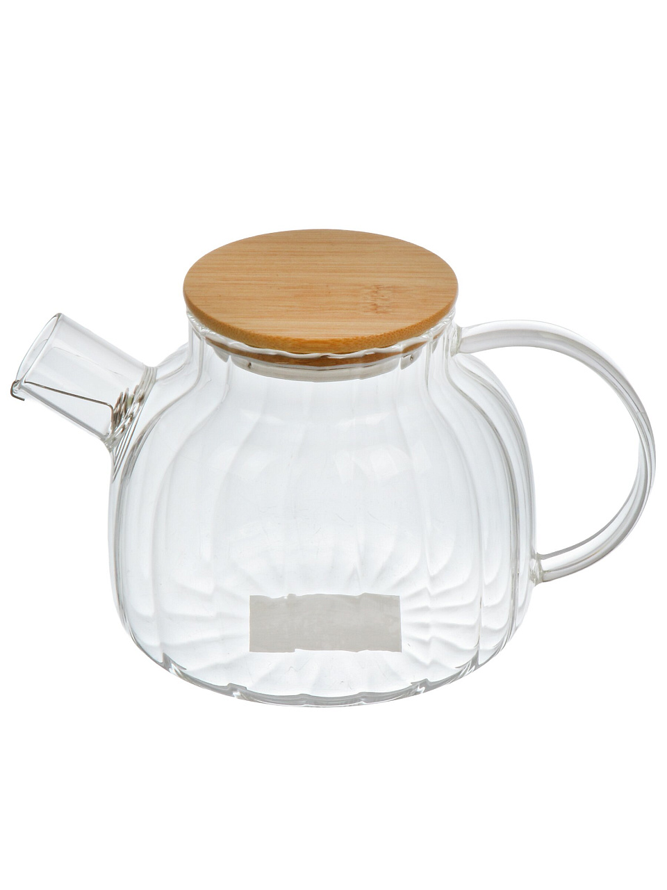Заварочный чайник из стекла 1 л «Ажур» с бамбуковой крышкой — стильное решение для дома и дачи, сохраняет вкус чая и подходит для подарка.
