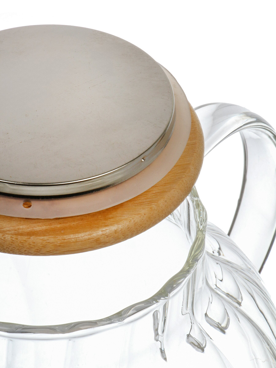 - Экологичный дизайн: прозрачное боросиликатное стекло и натуральная бамбуковая крышка.