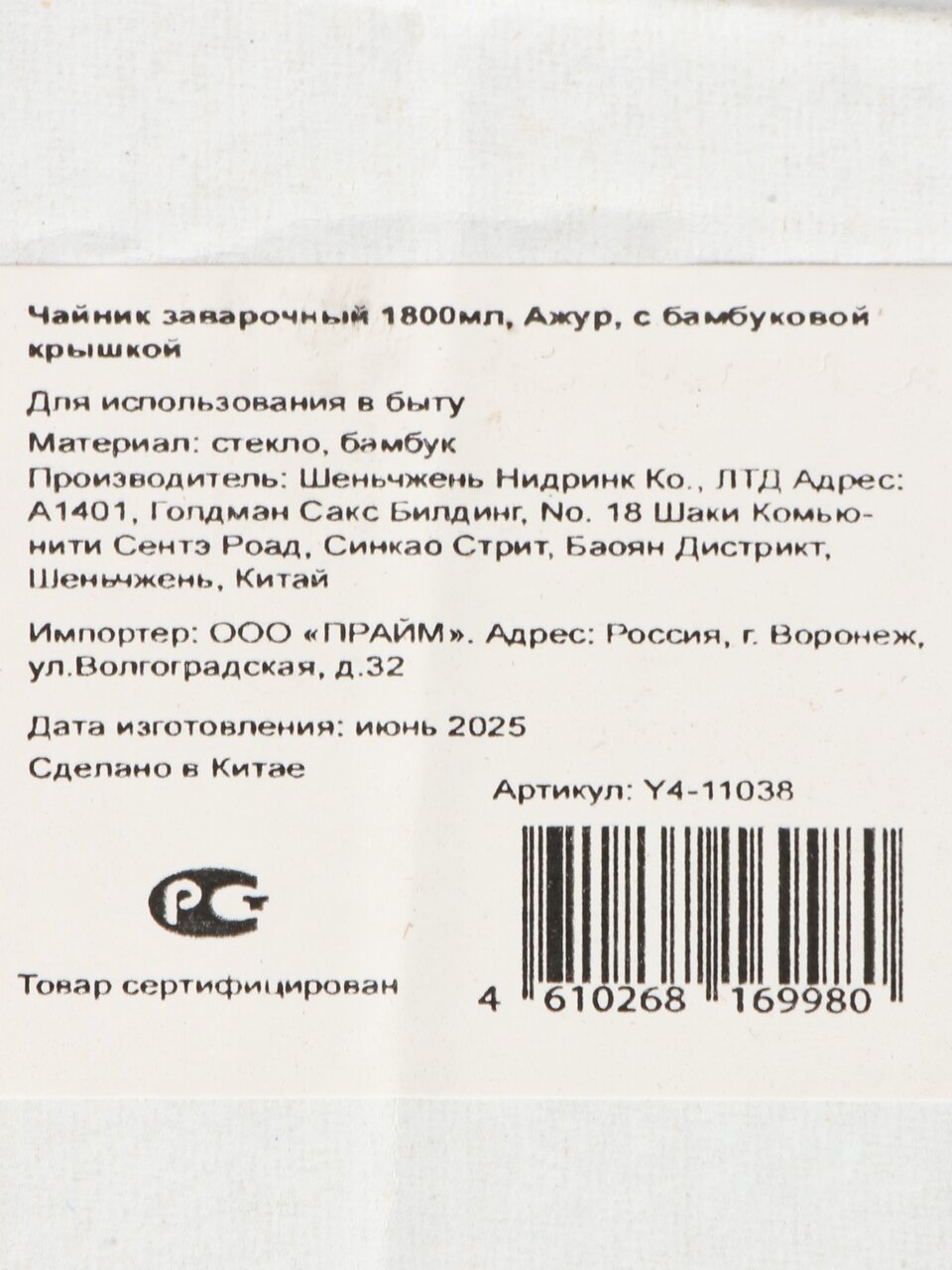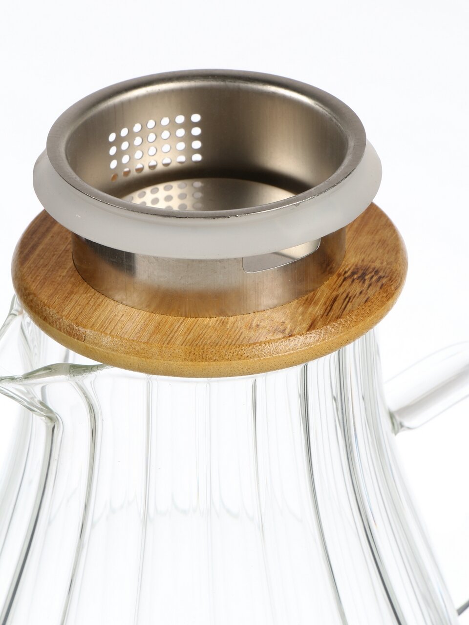 Чайник заварочный стекло, 1.8 л, Ажур, с бамбуковой крышкой, Y4-11038