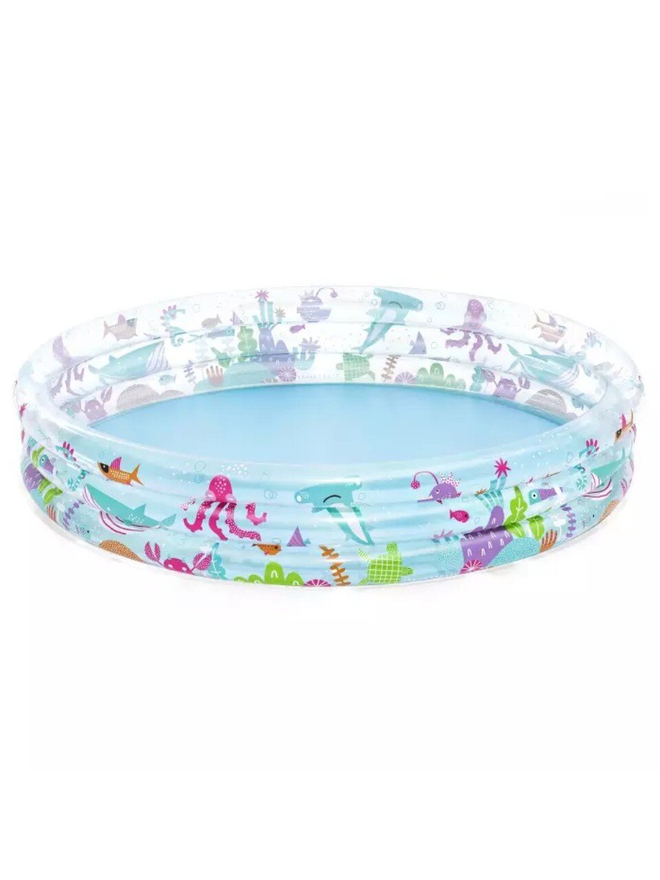 Бассейн надувной Bestway 183х33 см — популярный выбор среди родителей, ищущих недорогой и безопасный детский бассейн для дачи или двора. Благодаря трём кольцам одинакового размера, конструкция остаётся устойчивой даже при активных играх, а яркий дизайн радует малышей. Если вы спрашиваете, какой бассейн лучше для детей от 2 лет, обратите внимание на этот вариант: компактный, легко помещается на участке и не требует сложного ухода.