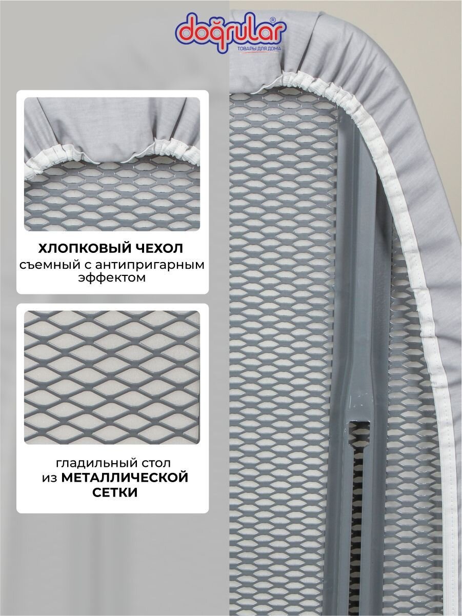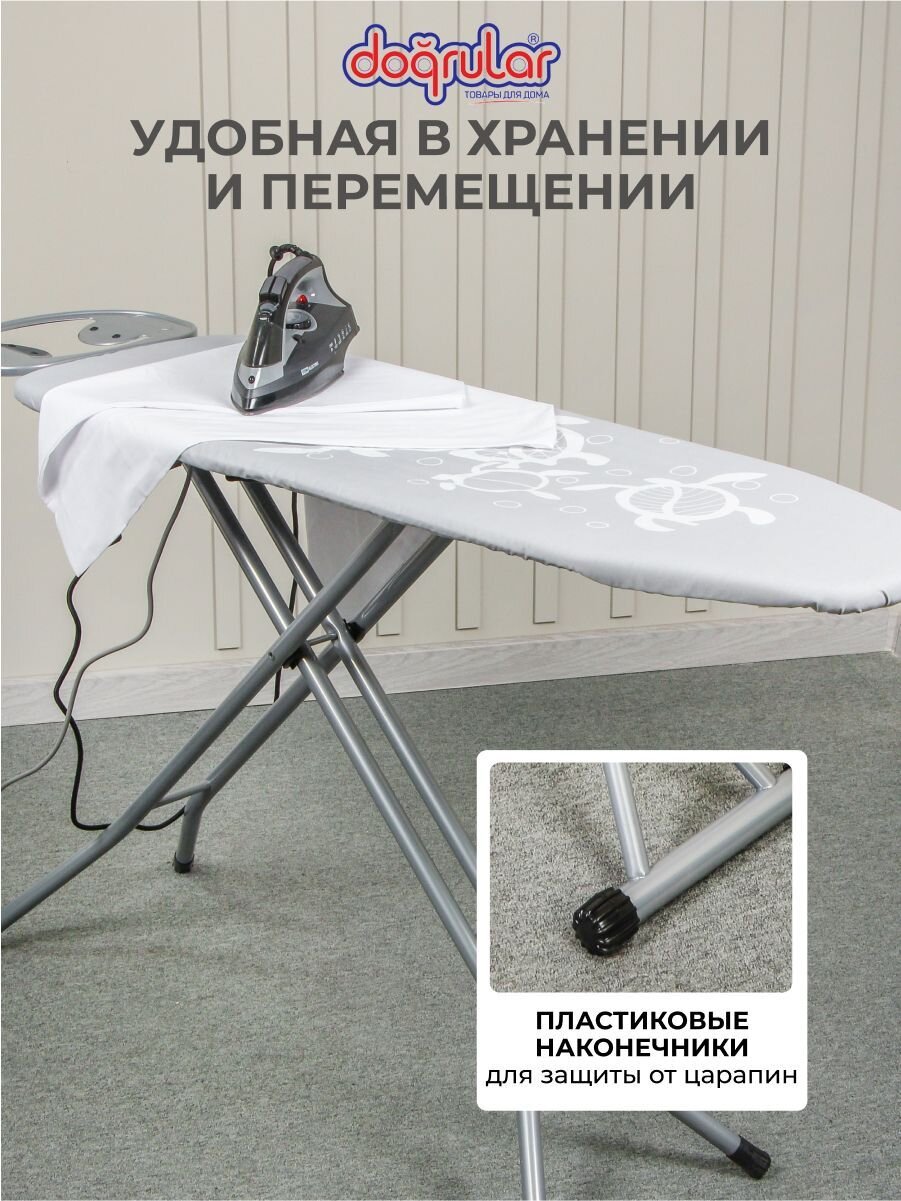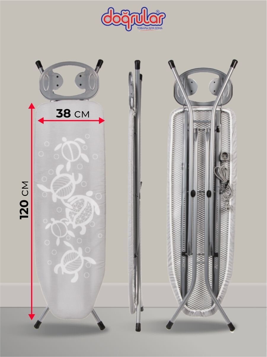 Доска гладильная 120х38 см, модель Глория от Dogrular – идеальный выбор для тех, кто ценит комфорт и функциональность в повседневных домашних задачах. Благодаря продуманной конструкции и современным решениям процесс глажки становится максимально удобным и быстрым. Просторная гладильная поверхность 120х38 см позволяет с легкостью справляться даже с крупными вещами, а надежная металлическая основа обеспечивает устойчивость и долговечность.