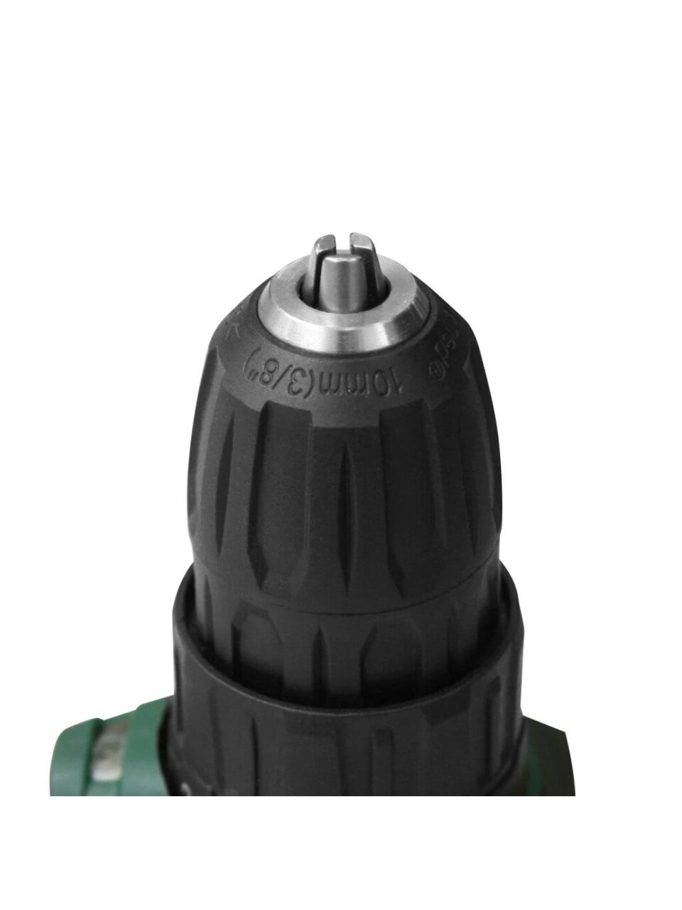 Эта модель оснащена щеточным двигателем и работает от 12-вольтового литий-ионного аккумулятора емкостью 2 А-ч, что обеспечивает длительное время работы без подзарядки. В комплекте идут два аккумулятора, что позволяет всегда иметь запас энергии под рукой. Максимальное число оборотов в минуту достигает 1400, что делает инструмент эффективным для выполнения различных задач.