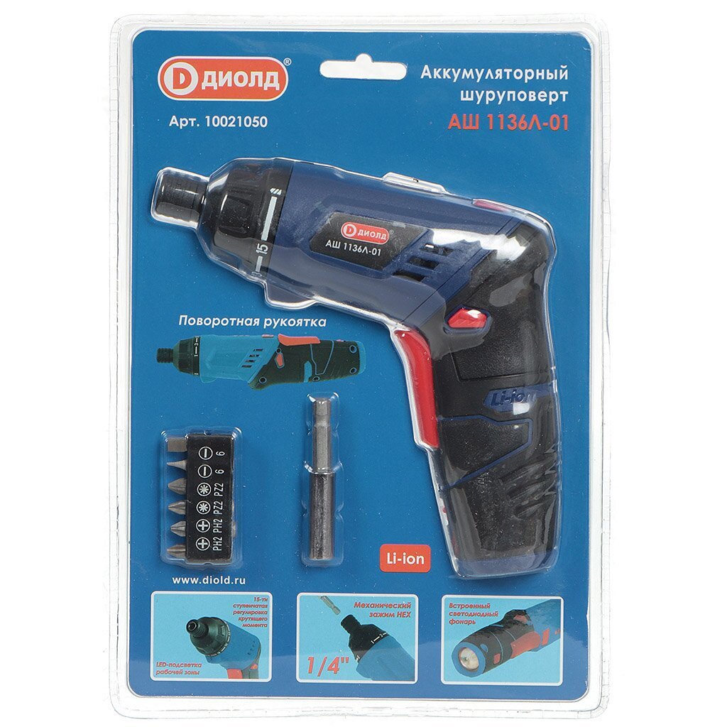 Вы можете приобрести «Дрель-шуруповерт аккумуляторный, Диолд, АШ-1136 Л-01, 3.6 В, блистер, 10021050» и другие товары в нашем интернет-магазине в Тамбове по низким ценам и с бесплатным самовывозом.