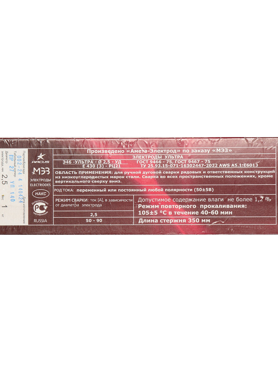 Вы можете приобрести «Электроды МЭЗ, МР-3, Ультра, 2.5 мм, 1 кг, коробка, Ц0040168» и другие товары в нашем интернет-магазине в Таганроге по низким ценам и с бесплатным самовывозом.