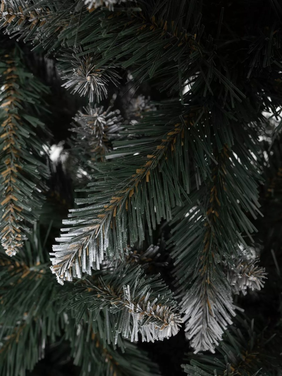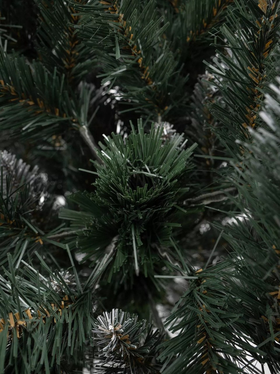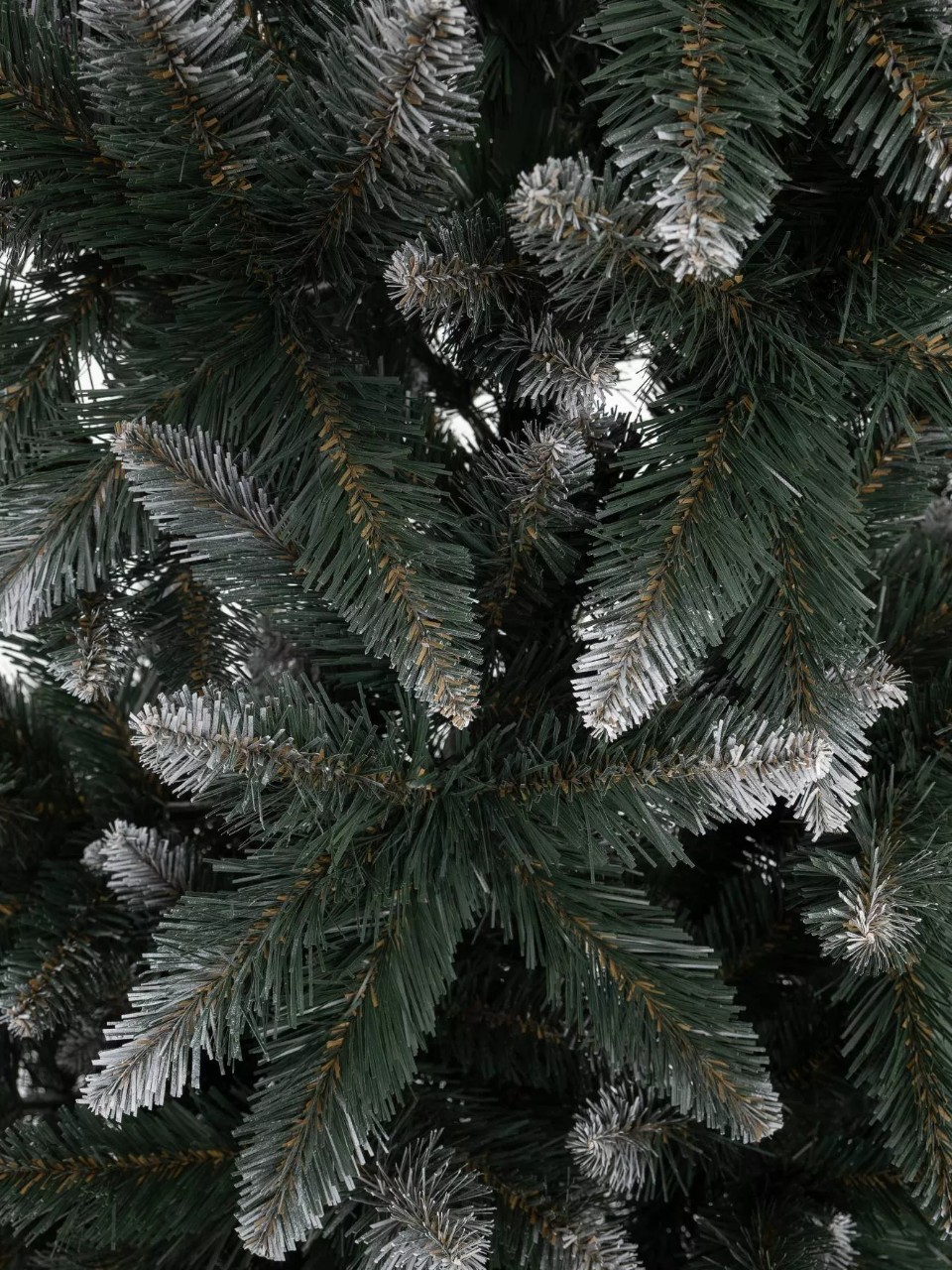 - Реалистичный вид благодаря густой хвое ПВХ и декору «иней» — создаёт ощущение настоящей ели даже при ближайшем рассмотрении