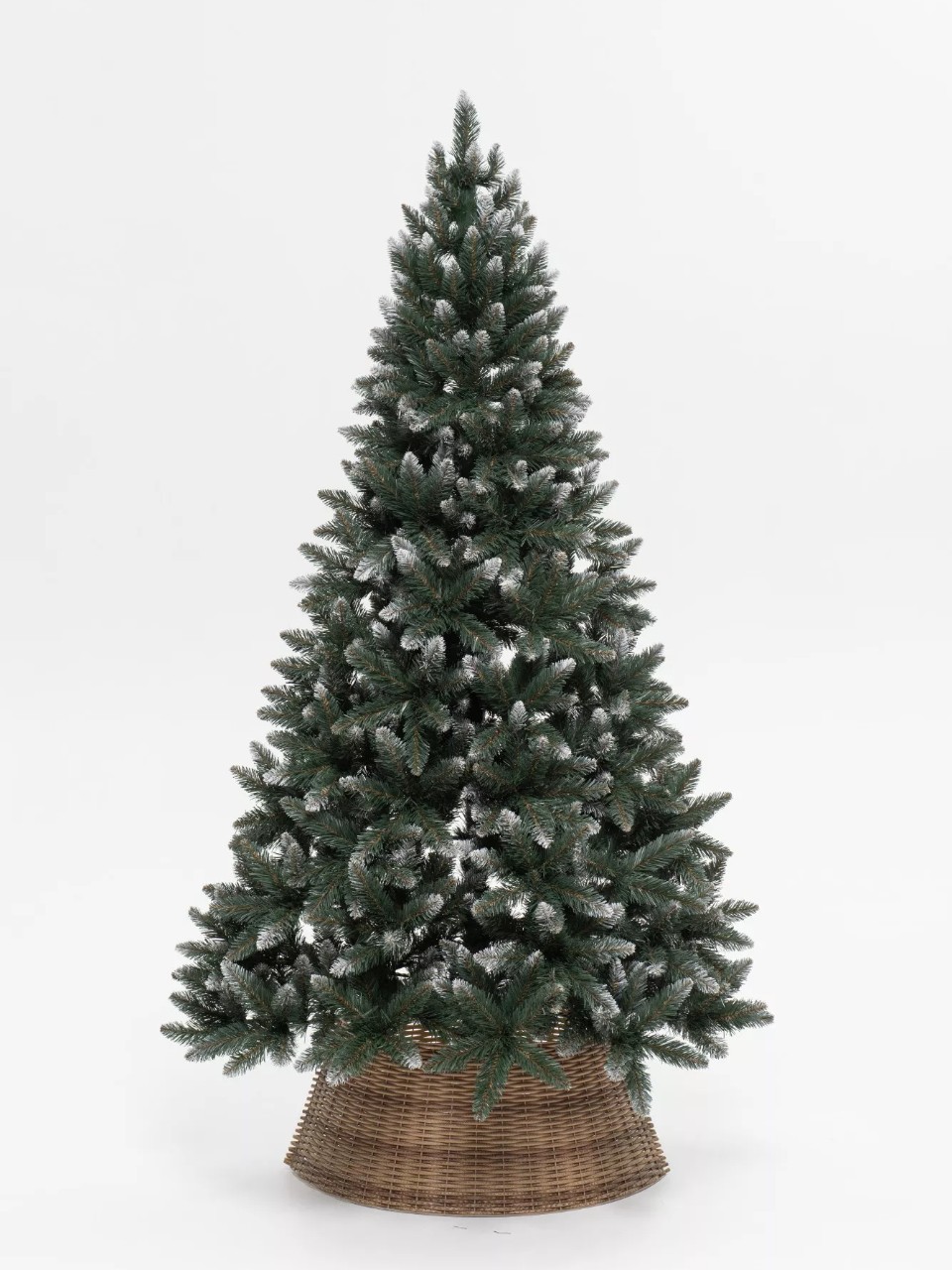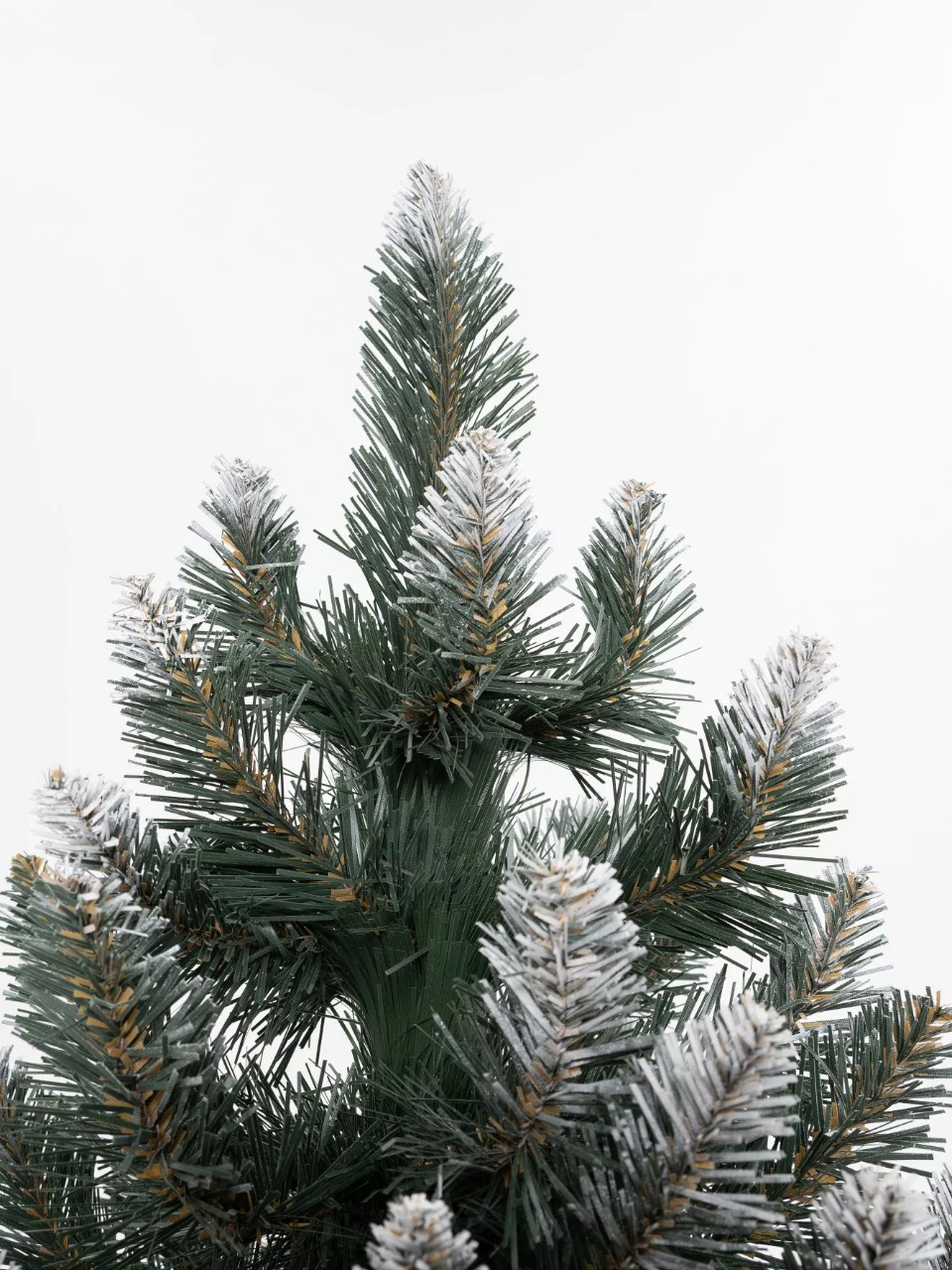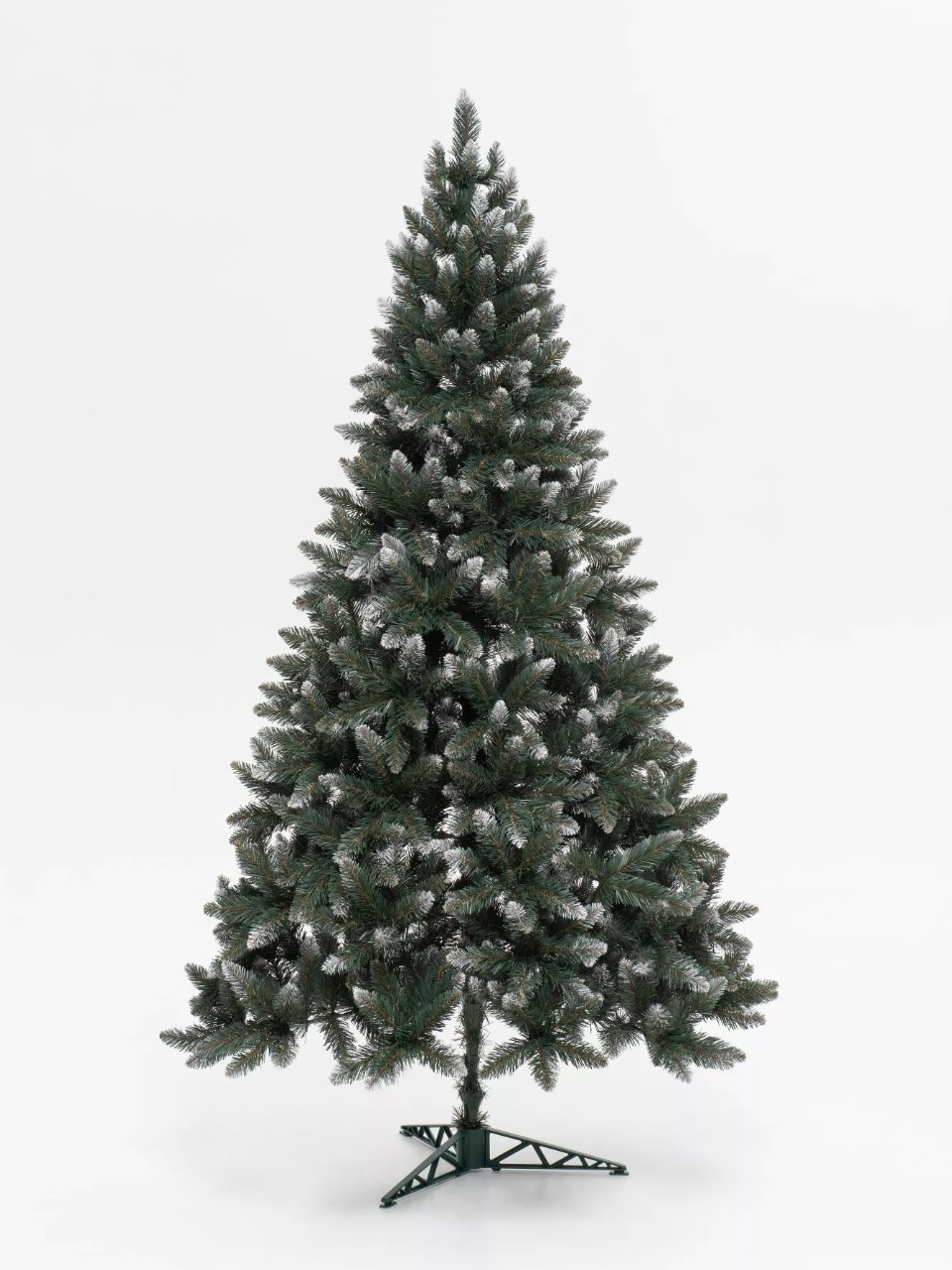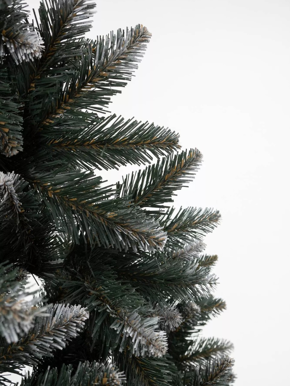 - Реалистичный вид благодаря густой хвое ПВХ и декору «иней» — создаёт ощущение настоящей ели даже при ближайшем рассмотрении