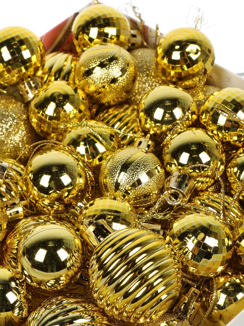 Эффектный набор пластиковых шаров 42 шт (3-4 см, золото): стильное решение для быстрой и безопасной новогодней декорации дома, дачи или офиса.