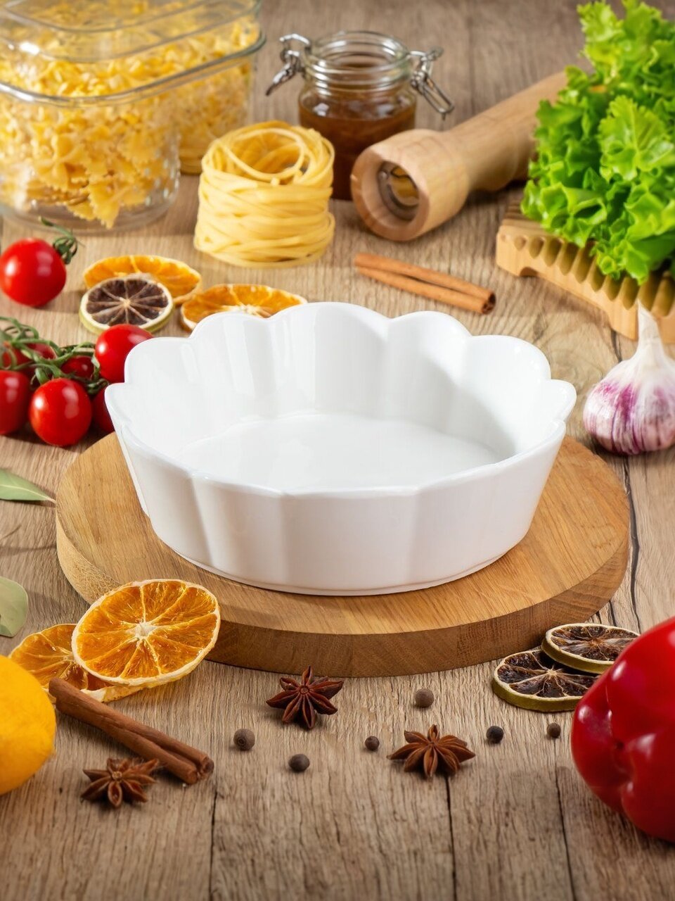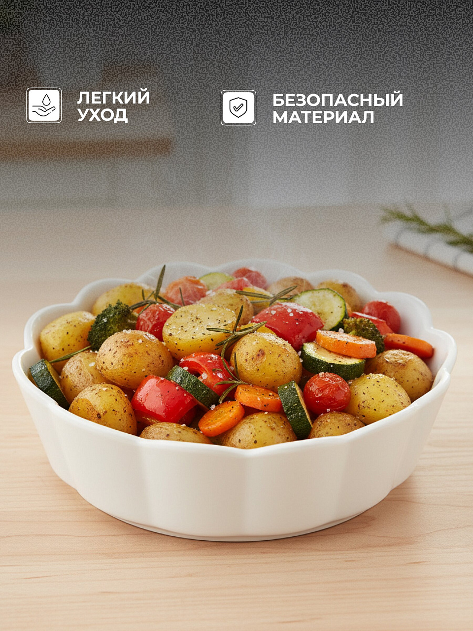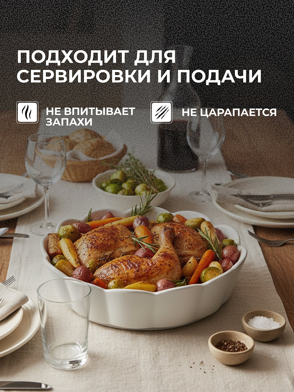 В отличие от стеклянных или металлических аналогов, керамика дольше удерживает тепло, а отсутствие антипригарного покрытия означает, что можно использовать любые масла и соусы без риска повреждения поверхности. Форма легко очищается вручную и в посудомоечной машине, не теряя белизны. Часто спрашивают: подходит ли для микроволновки — да, изделие полностью совместимо с СВЧ и духовкой. Это универсальный вариант для повседневного и праздничного стола, также подойдет как недорогой подарок для дачи или новоселья.