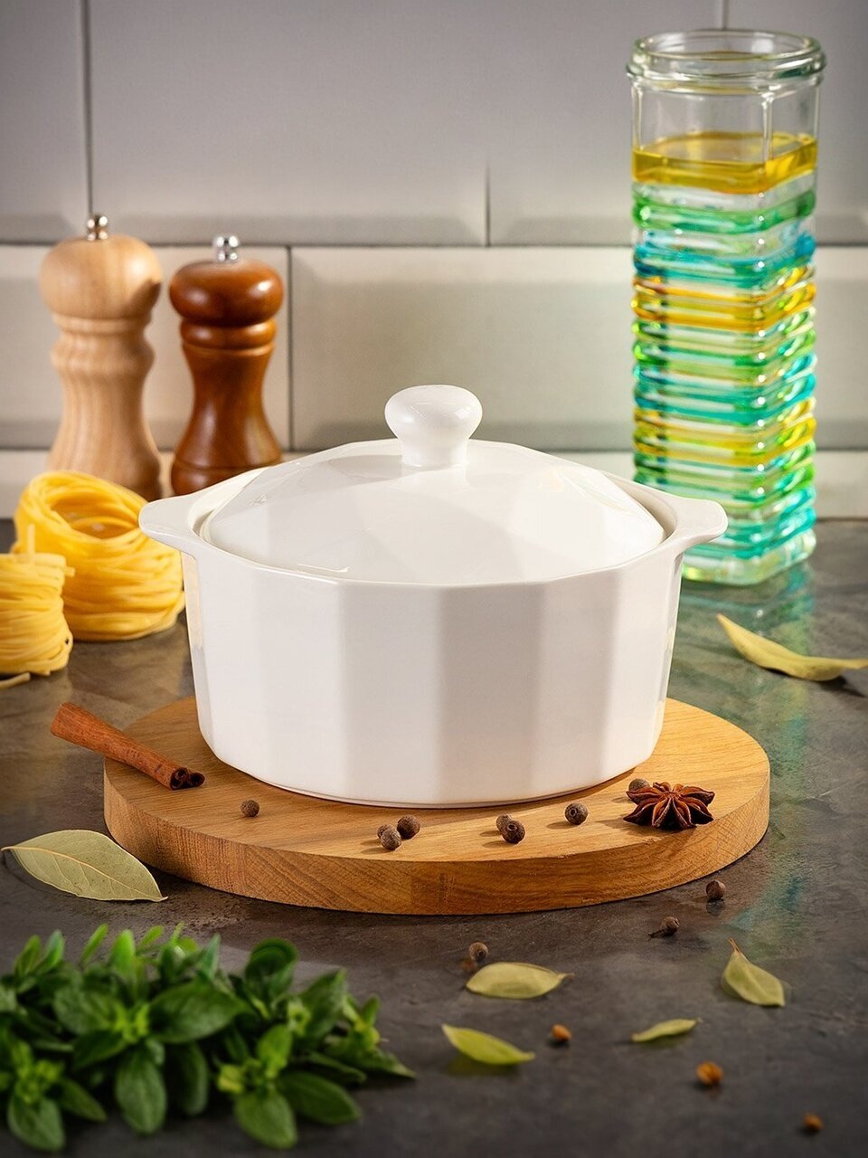 - Практично для дома, дачи и в подарок: лаконичный белый дизайн, крышка в комплекте, можно мыть в посудомоечной машине