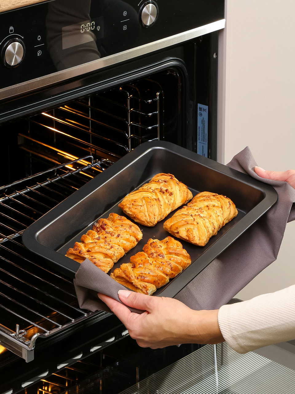 - Универсальность: подходит для запекания пирогов, мяса, рыбы, овощей и тортов — один набор закрывает все бытовые задачи