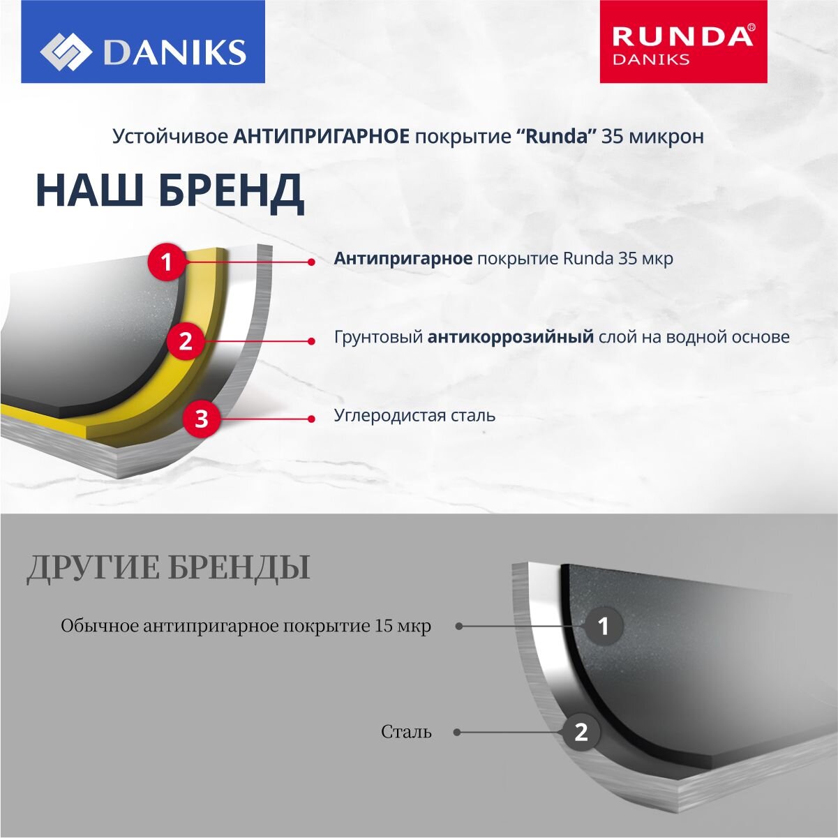 В отличие от аналогов из стекла или керамики, стальной противень Daniks быстрее нагревается и равномерно пропекает продукты. Это особенно важно, если вы ищете, какую форму выбрать для пирога или рыбы: блюда не прилипают, а покрытие защищает от сколов и царапин. Форма не подходит для СВЧ и посудомоечной машины, зато легко моется вручную.