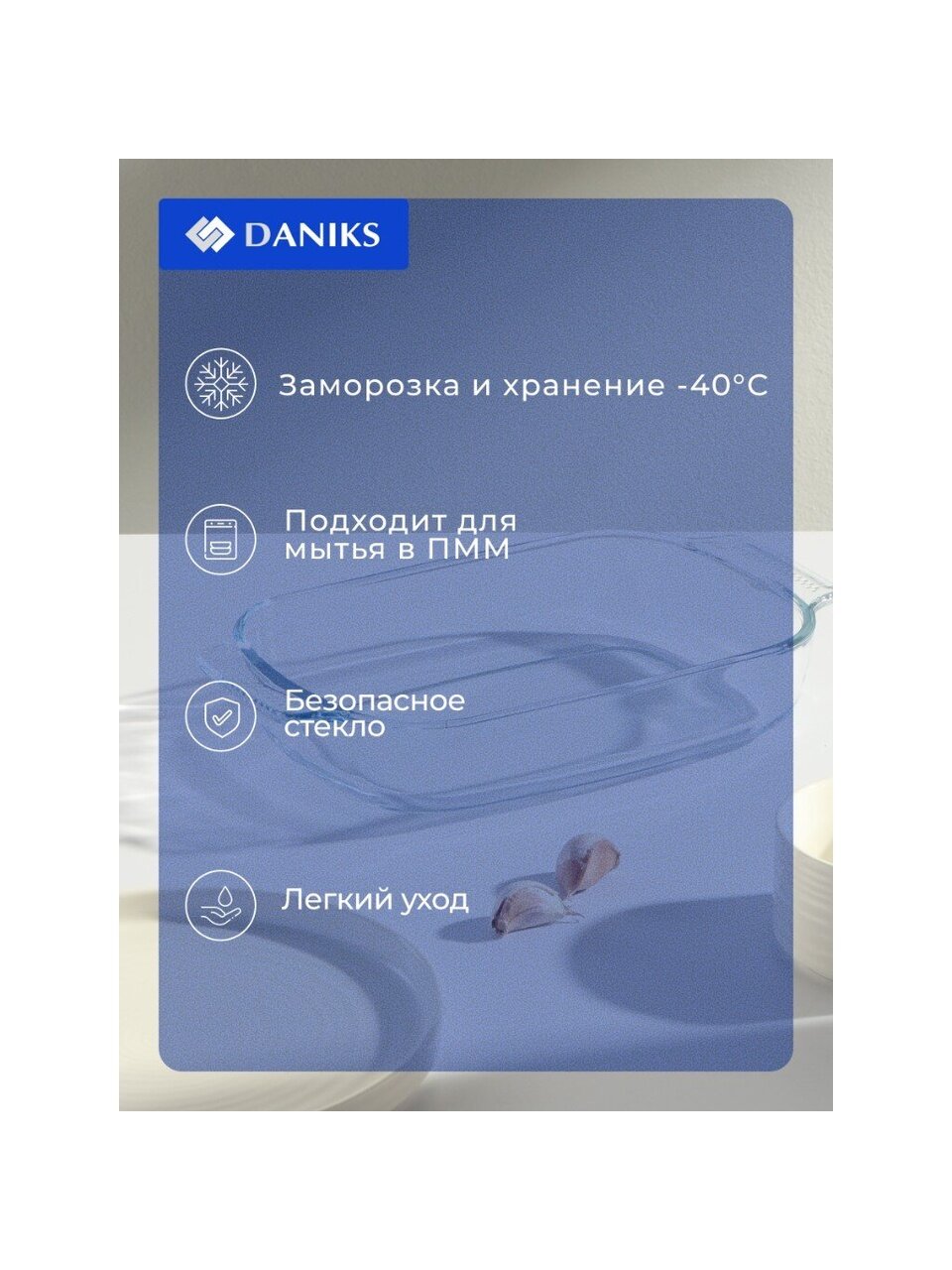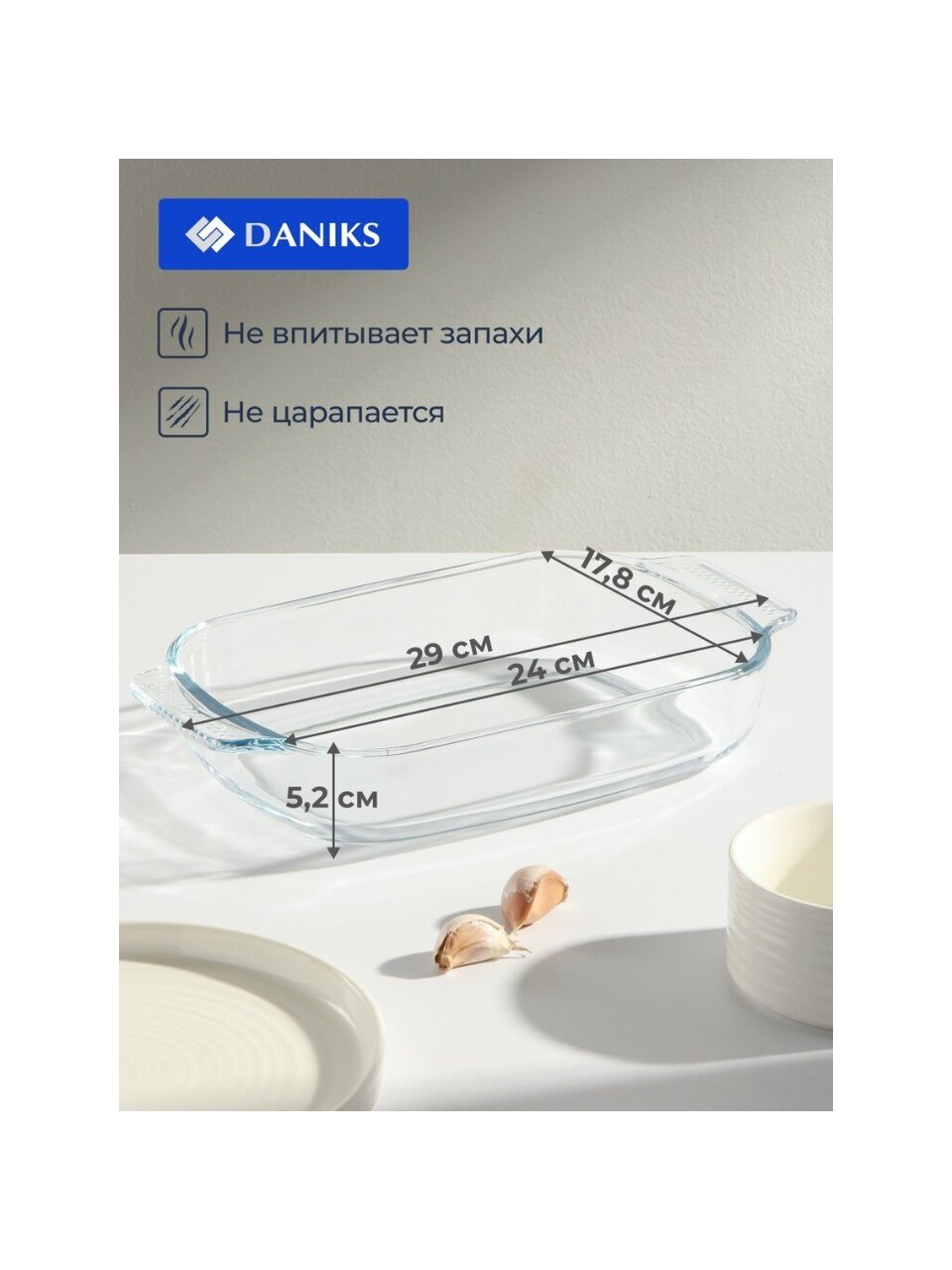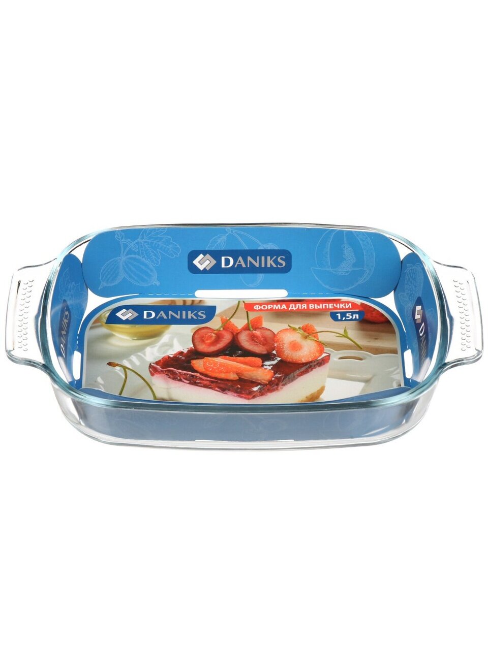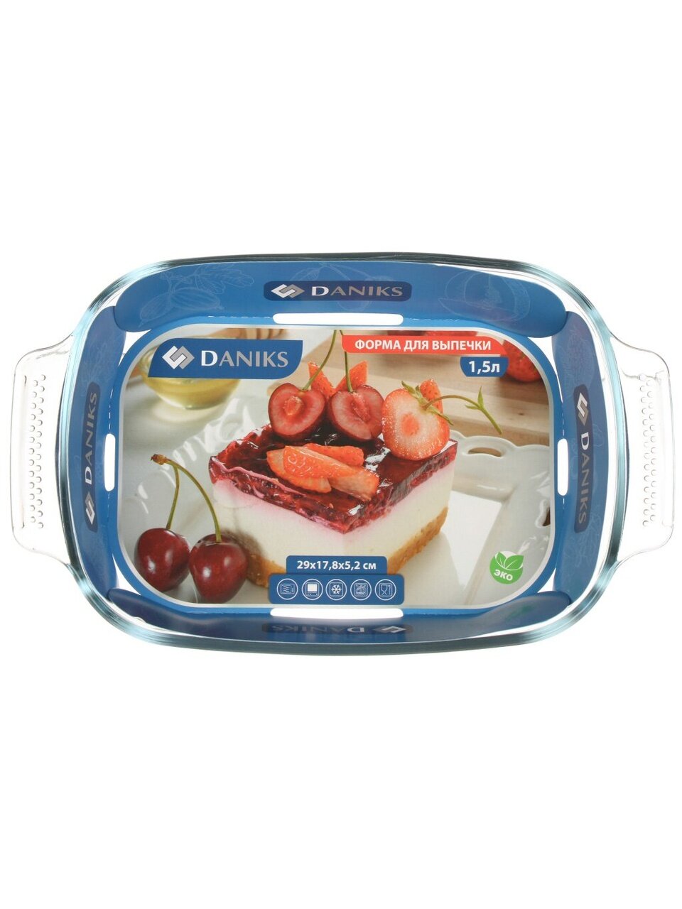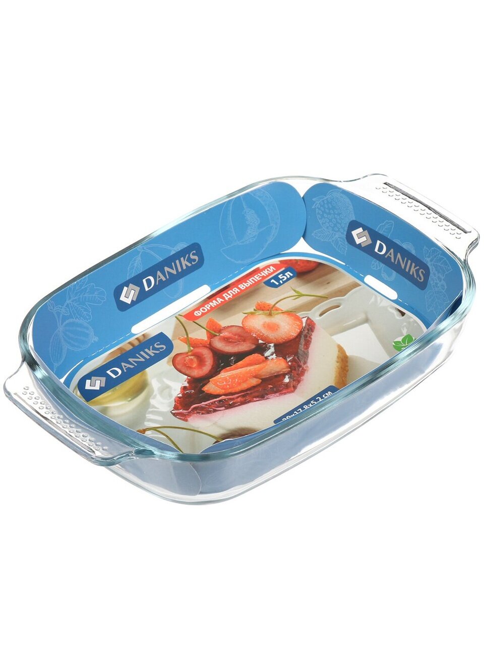 Форма для запекания Daniks 1.5 л: безопасное стекло, универсальный размер 17.8х29 см для рыбы, курицы, пирогов. Решение для дома и дачи — легко мыть, подходит для СВЧ и духовки.