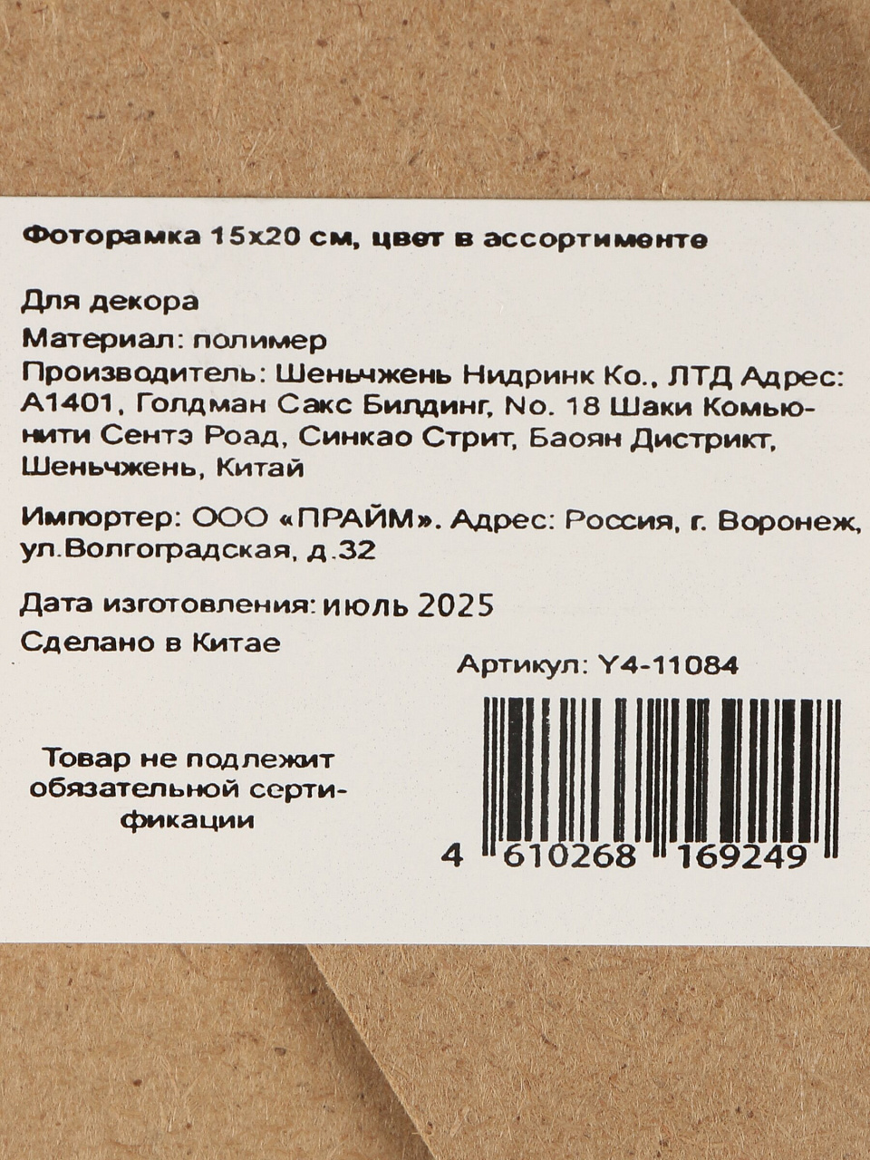 Фоторамка 15х20 см, пластик, асс, Y4-11084