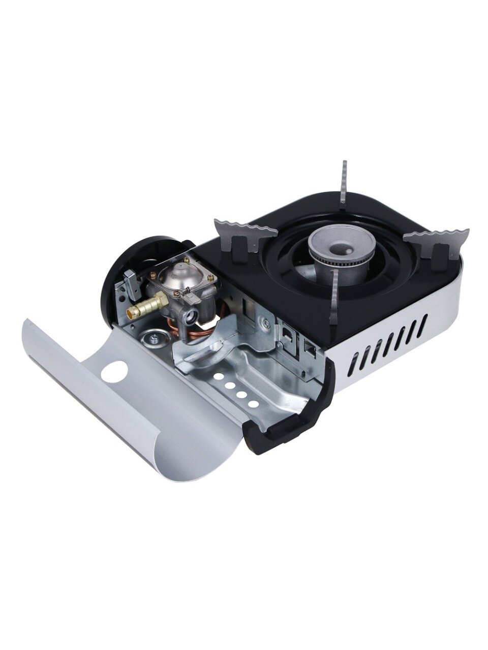 Газовая плита с цанг захватом и пьезоподжигом: компактное решение 25х20х7.7 см для дачи и выездов, в кейсе. Быстрый старт без спичек, надёжный алюминий.