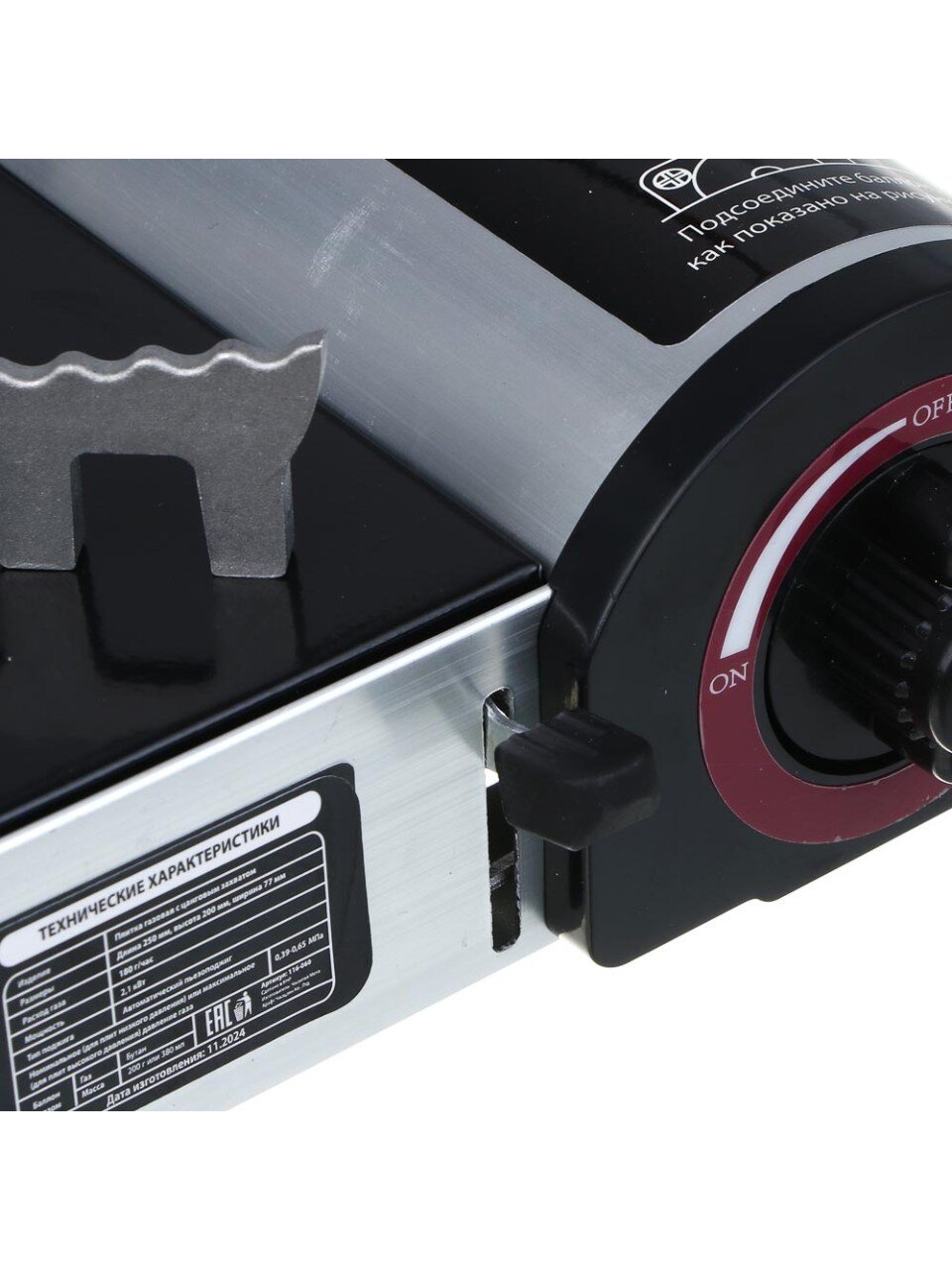 Плита рассчитана на стандартные цанговые баллоны, которые легко устанавливаются благодаря захвату. Баллон фиксируется надёжно, исключая утечку газа.