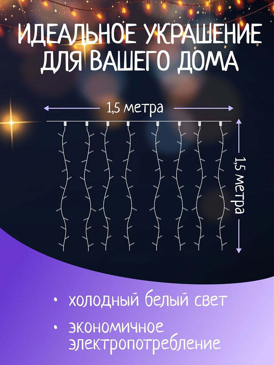 Когда Новый Год готовится вступить в свои права, каждый дом наполняется весельем и ожиданием волшебства. Гирлянды - это отличный вариант для новогоднего оформления интерьера или фасада. С их помощью помещение любого размера можно превратить в праздничный зал, а внешние элементы зданий, украшенные ими, мгновенно станут напоминать очертания сказочного дворца. Такие украшения создают ауру предвкушения чуда. Живописный свет лампочек этой гирлянды - завораживающее зрелище, эффектное и очаровательное. Это жизнерадостное изделие станет незаменимым элементом в общей картине новогоднего антуража.