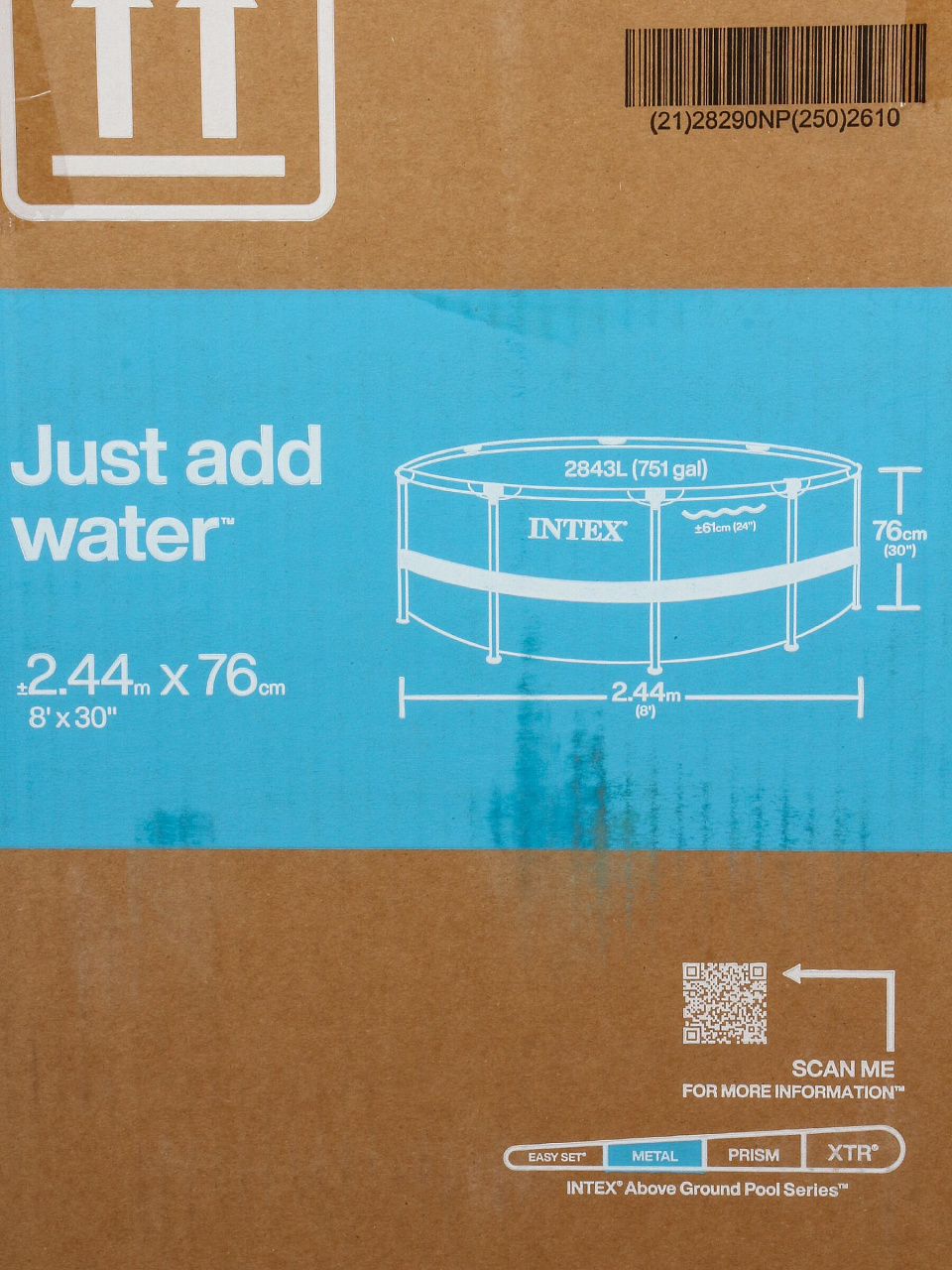 Диаметр бассейна — 244 см, высота — 76 см. Время установки — около 30 минут без специальных инструментов и навыков.