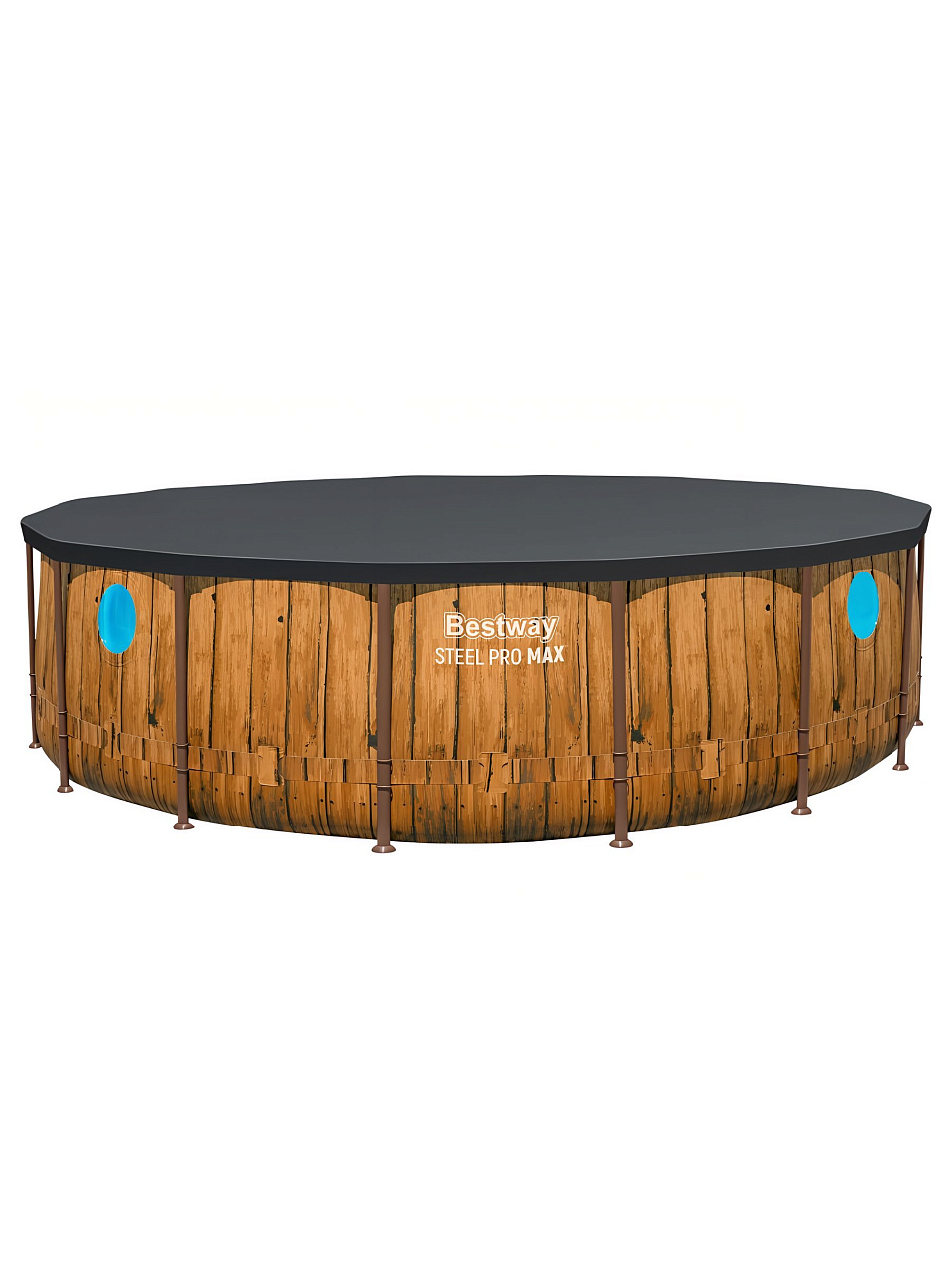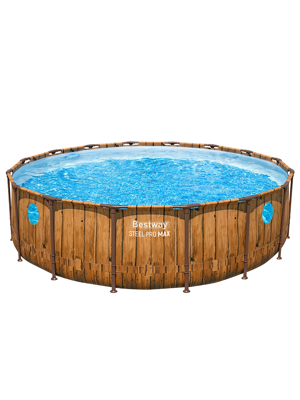 Каркасный бассейн Bestway Steel Pro Max 56725 — оптимальный выбор для тех, кто ищет большой уличный бассейн для дачи или дома. Благодаря диаметру 488 см и глубине 122 см, в нём комфортно купаться взрослым и детям. Трёхслойная чаша из армированного ПВХ устойчива к износу, а стальной каркас обеспечивает стабильность даже при максимальной загрузке. Оригинальное оформление под ротанг гармонично впишется в любой ландшафт, а 4 встроенных иллюминатора добавят атмосферу настоящего аквапарка.