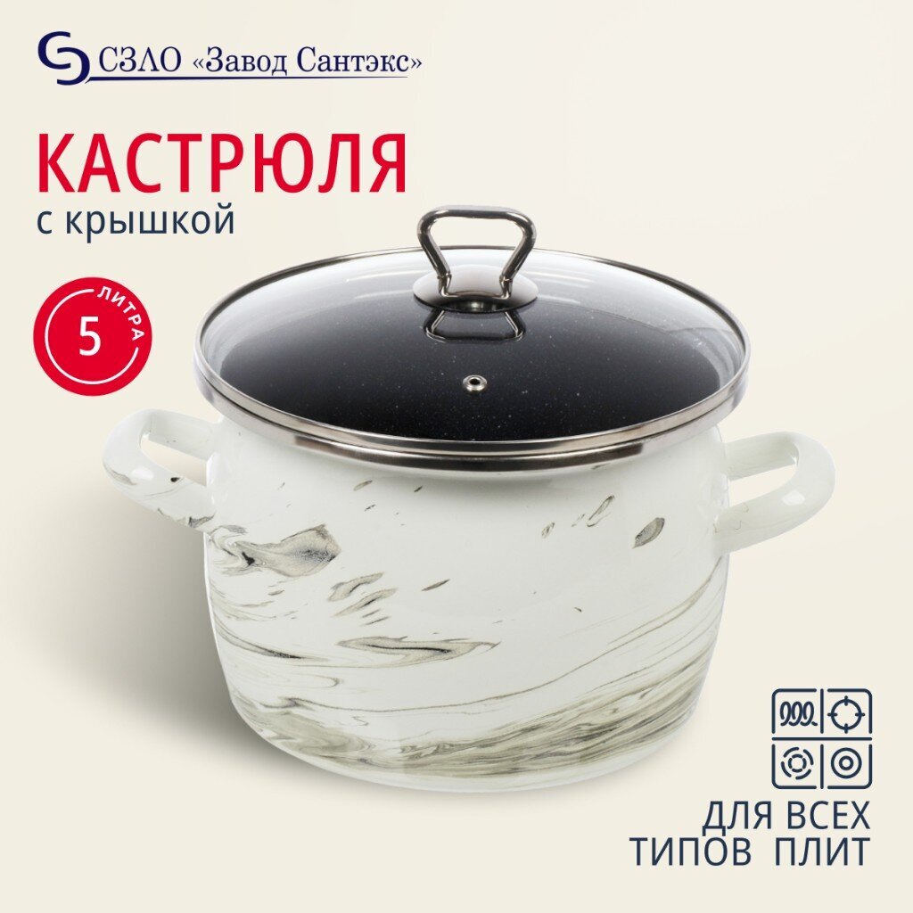 Вы можете приобрести «Кастрюля эмалированная сталь, 5 л, крышка стекло, сферический, Сантэкс, Шейк серый гранит, 1-2450111, бело-черная, индукция» и другие товары в нашем интернет-магазине в Коврове по низким ценам и с бесплатным самовывозом.