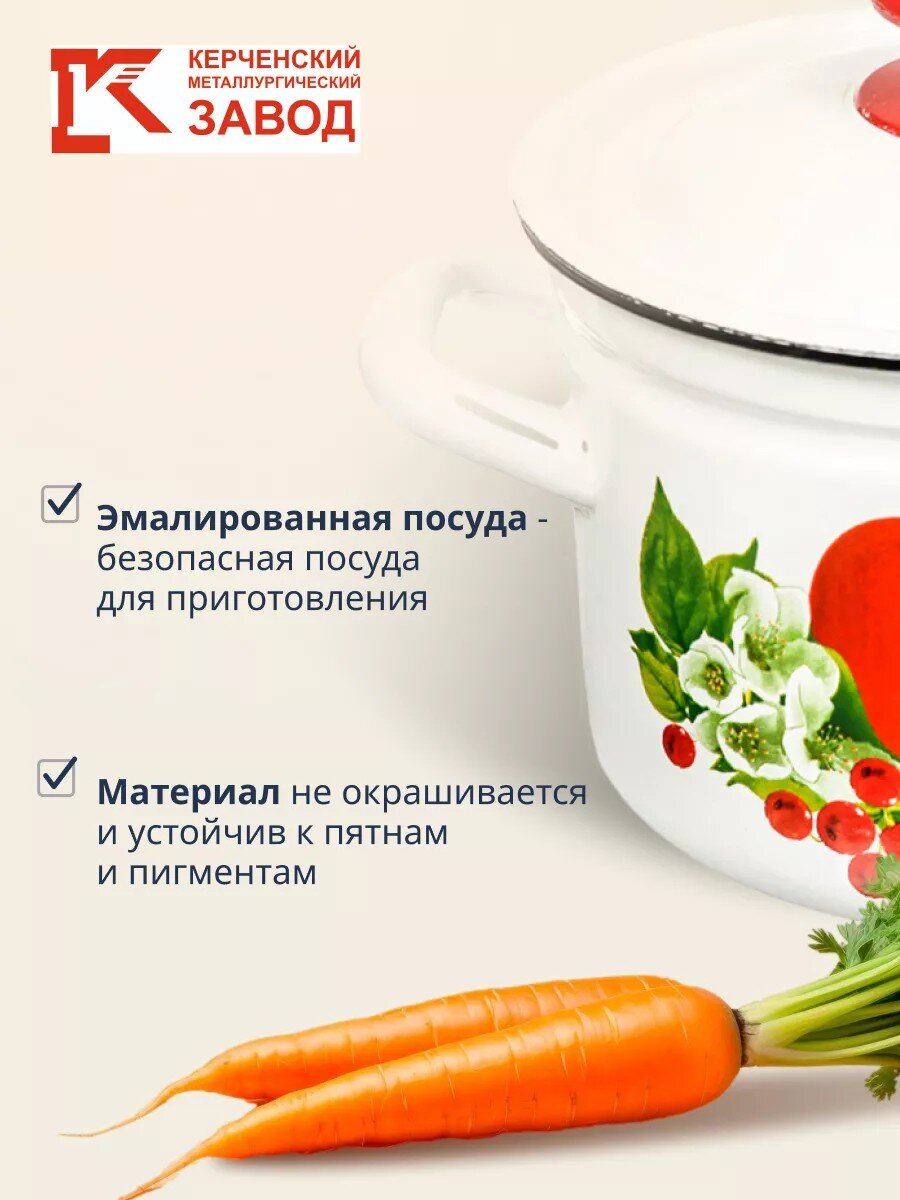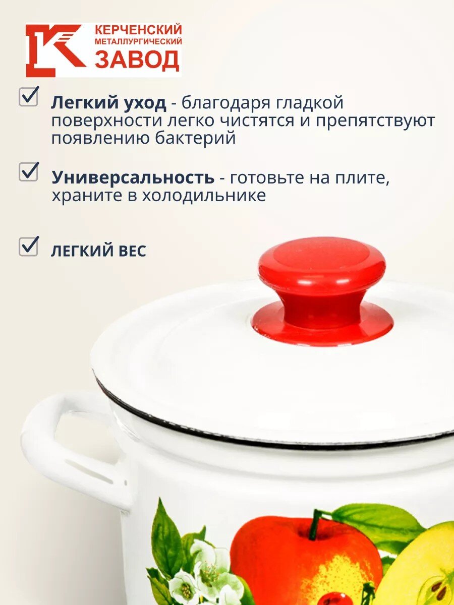Эмалированная кастрюля 2 л Керченский металлургический завод — идеальное решение для варки супов, каш и пюре: прочная сталь, стильный декор, гарантия 24 месяца.