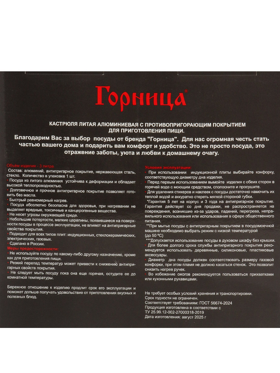 Выбирайте кастрюлю Горница Гранит Induction 3 л — выгодное решение для дома и дачи. Закажите сейчас и получите надёжную посуду с гарантией производителя и быстрой доставкой!