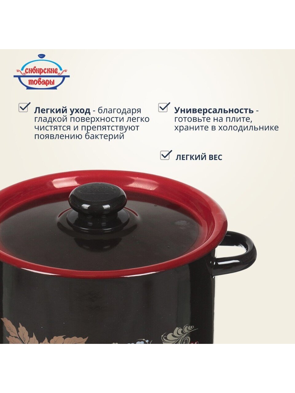Эмалированная кастрюля объёмом 5,5 литра от бренда «Сибирские товары» — это оптимальный выбор для тех, кто ищет недорогую, но надёжную посуду для кухни или дачи. Эмалированная сталь не впитывает запахи, устойчива к коррозии и легко моется даже в посудомоечной машине. Если вы ищете, какую кастрюлю выбрать для варки супов, компотов или заготовок — эта модель отлично подойдёт для ежедневного и сезонного использования.