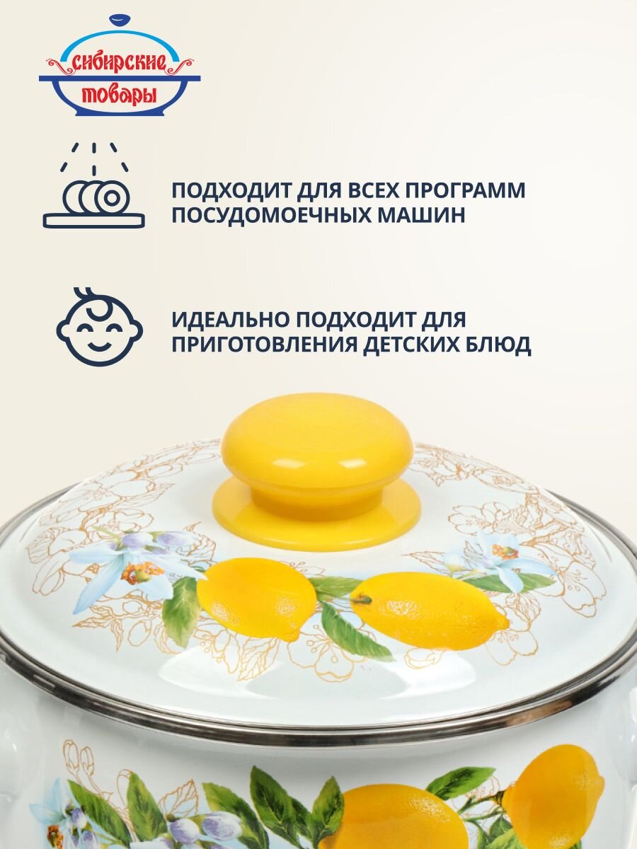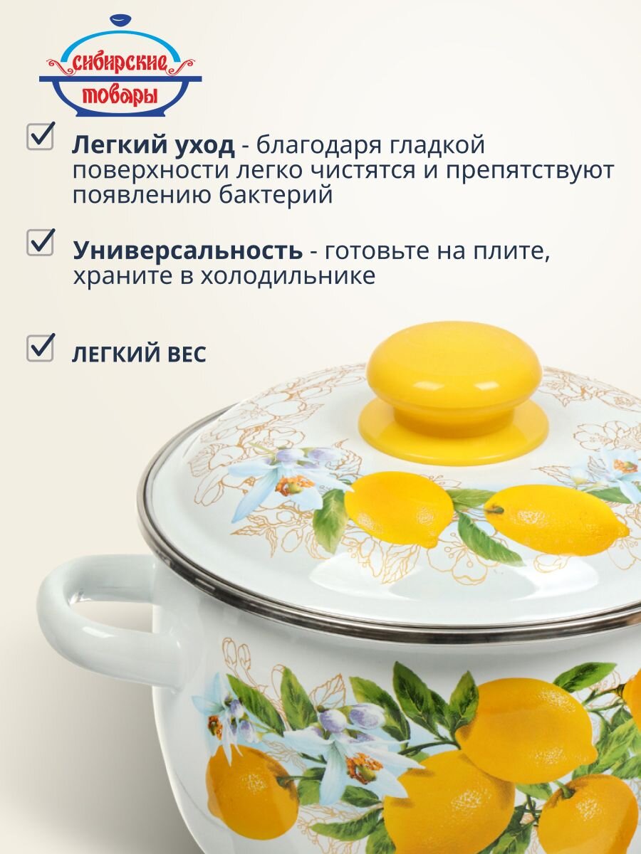 Кастрюля эмалированная 2 л с крышкой из стали «Лимоны» для индукции — практичное решение для кухни и дачи. Лёгкая, долговечная, подходит для всех типов плит.