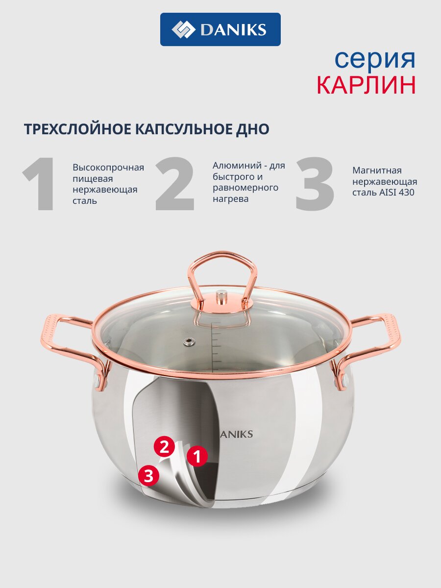 Оформите заказ и получите надёжную кастрюлю Daniks Карлин с выгодной ценой и официальной гарантией. Быстрая доставка по России — начните готовить с удовольствием уже завтра.