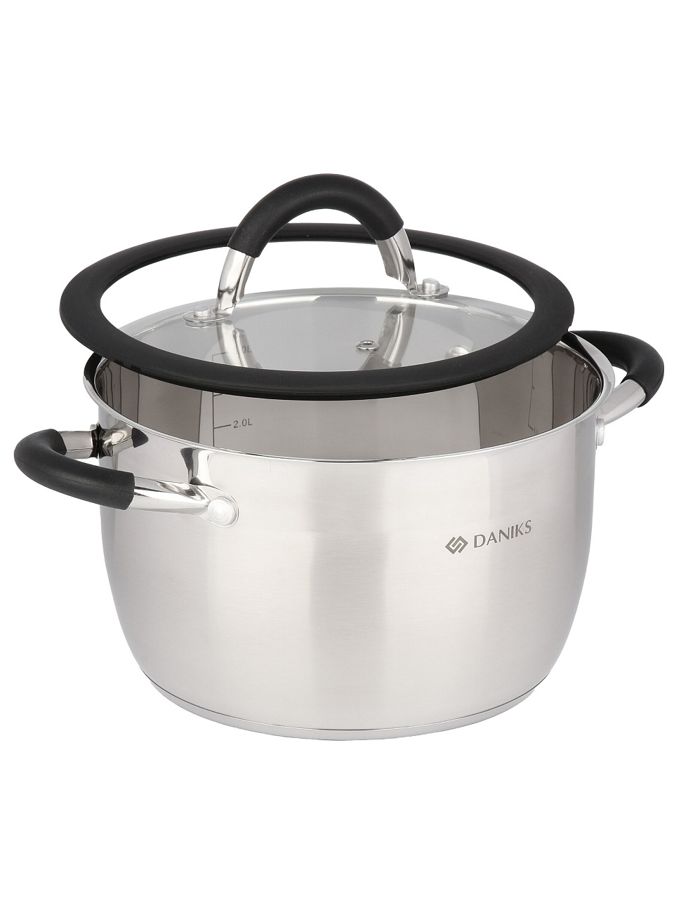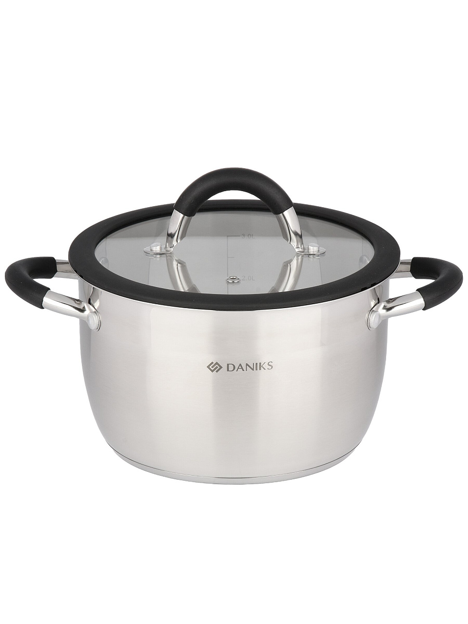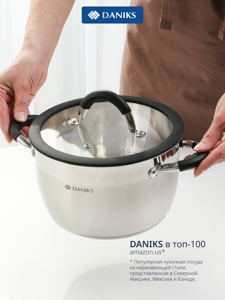 Кастрюля из нержавеющей стали 3.7 л Daniks Орландо — универсальное решение для кухни: долговечная, подходит для индукции, с мерной шкалой и стеклянной крышкой.