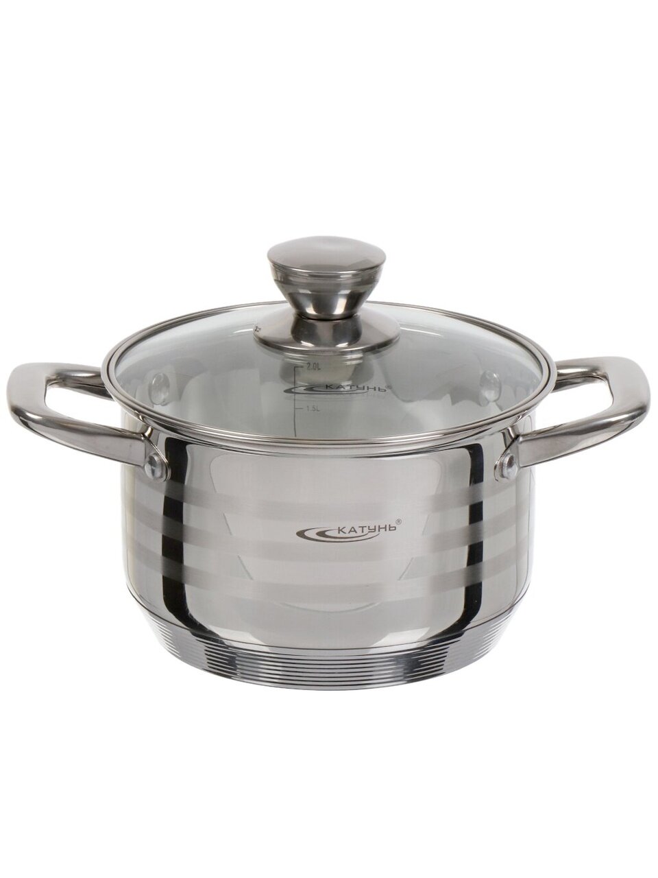 Кастрюля из нержавеющей стали 2.5 л Катунь Элис с капсульным дном: универсальное решение для индукции, газа и электрических плит. Готовьте супы, каши и пасту без хлопот!