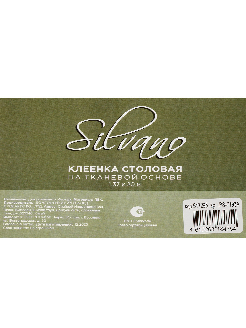 Вы можете приобрести «Клеенка Silvano, 1.37х20 м, ПВХ на тканевой основе, PS-7193A» и другие товары в нашем интернет-магазине в Тамбове по низким ценам и с бесплатным самовывозом.