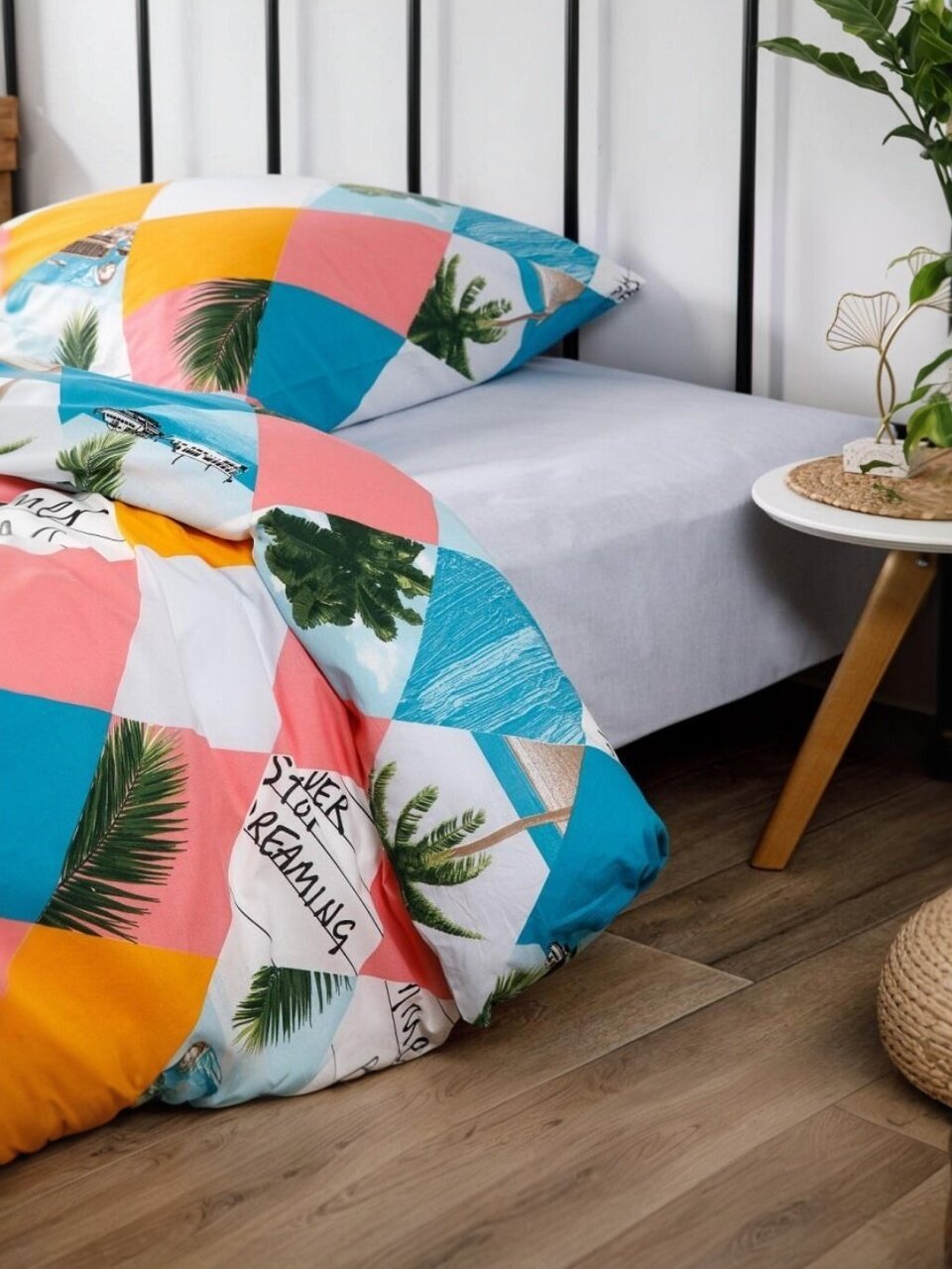 - Практичный комплект: простыня 220х240 см, 2 пододеяльника 145х215 см, 2 наволочки 70х70 см из 100% хлопка-поплина