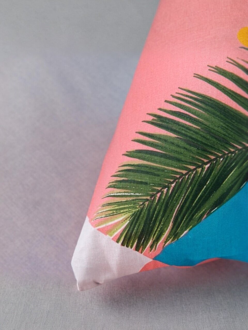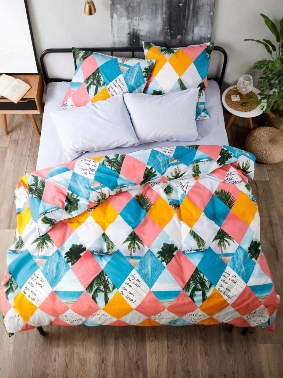 - Уникальный дизайн: современный принт с геометрией и листьями подчеркивает стиль спальни