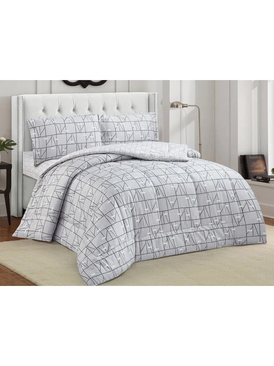 Если вы ищете, какое постельное белье выбрать для дачи или гостевой комнаты, этот комплект выгодно отличается наличием полноценного одеяла и универсальными размерами — простыня 230х250 см не сползает даже на высоких матрасах. Геометричный дизайн и сдержанный серый цвет впишутся в любой современный интерьер. Для подарка — идеальное решение: стильная фирменная упаковка и премиальный статус.