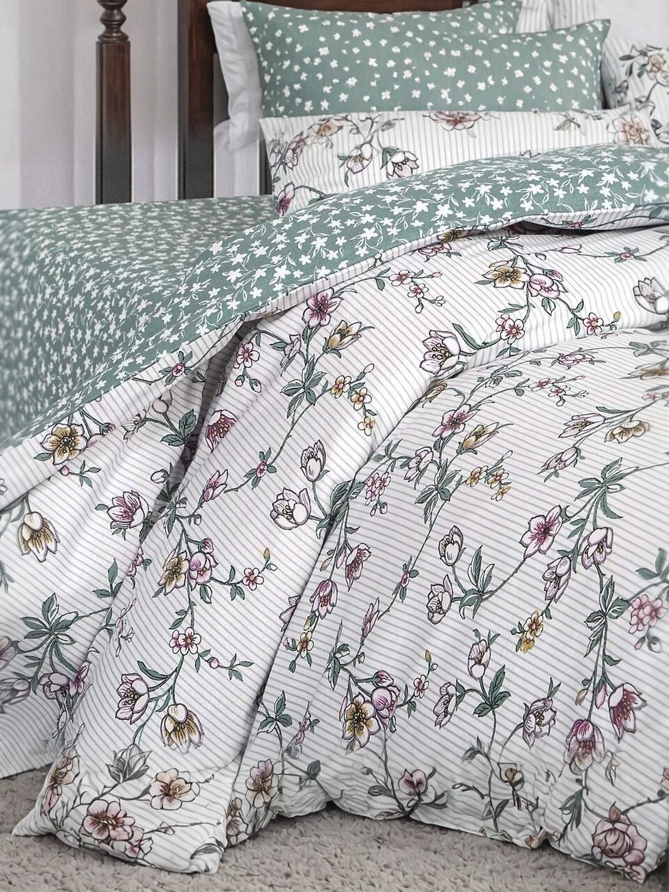 Комплект выполнен из натурального хлопкового поплина, рекомендована стирка при 40 градусах для сохранения цвета и формы.