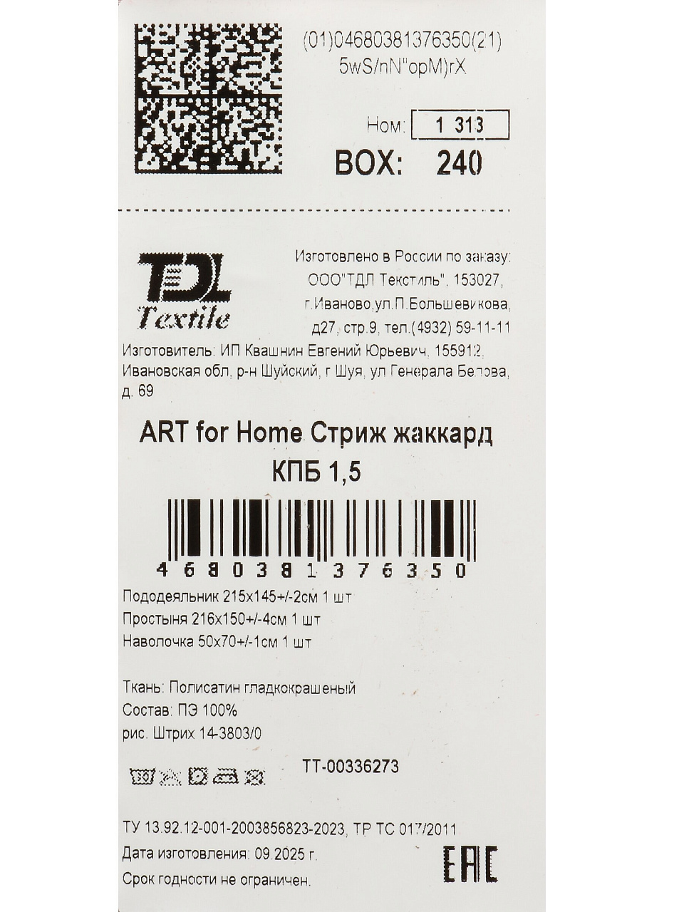 Постельное белье 1.5-спальное ART for Home «Штрих 14-3803»: долговечный полисатин, стильный жаккард, идеальный выбор для комфортного сна и экономии времени.