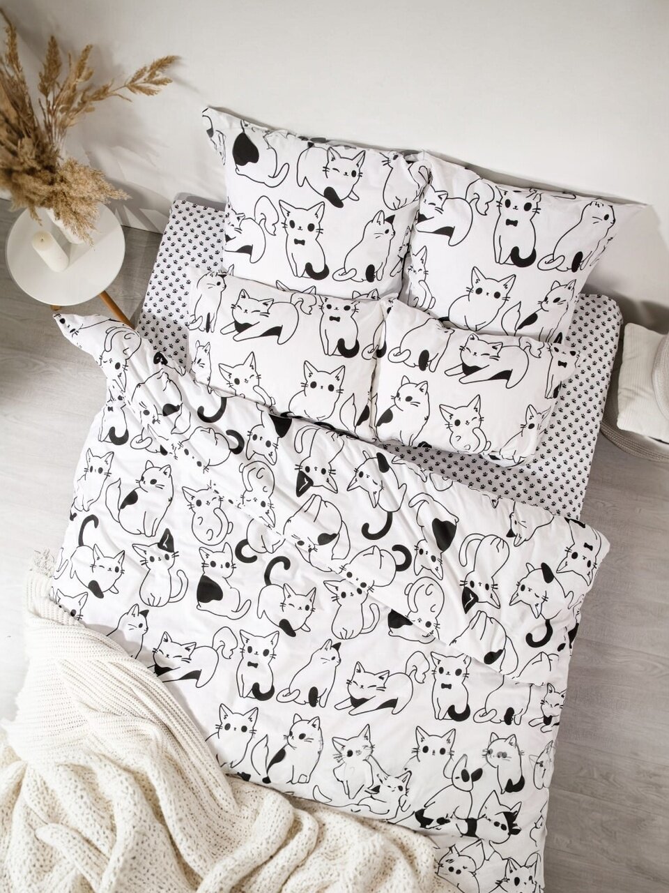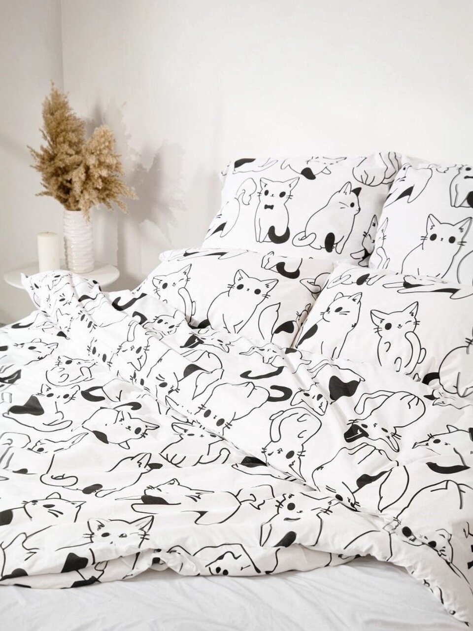 - Универсальный комплект: простыня 145х215 см, пододеяльник 145х215 см, две наволочки 50х70 см — подходит для подростков, взрослых, детей.