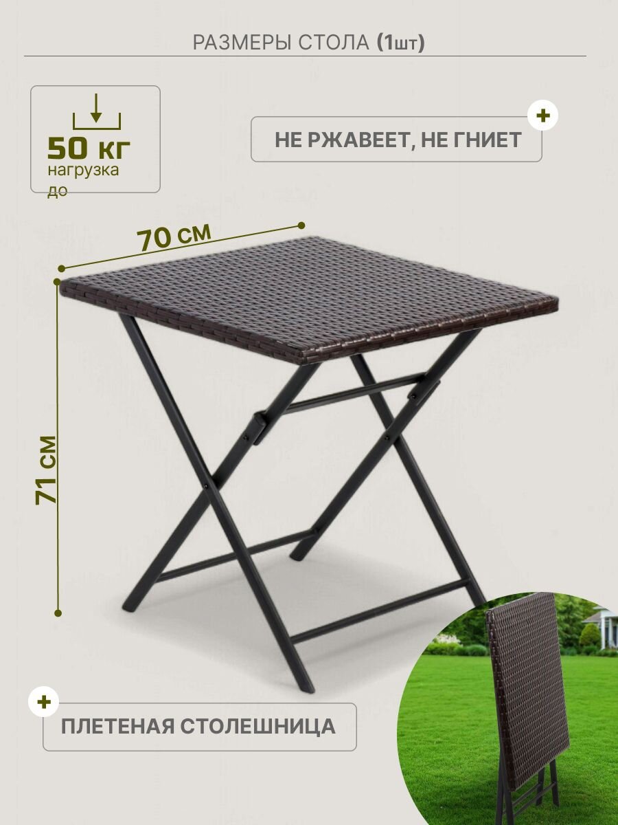 - Размер стола (ДхШхВ): 70х70х71 см.