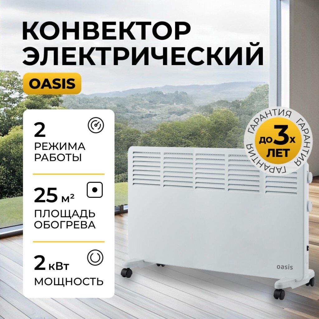 Вы можете приобрести «Конвектор Oasis, напольный/настенный, 2 кВт, 25 м2, белый, VK-20» и другие товары в нашем интернет-магазине в Ельце по низким ценам и с бесплатным самовывозом.