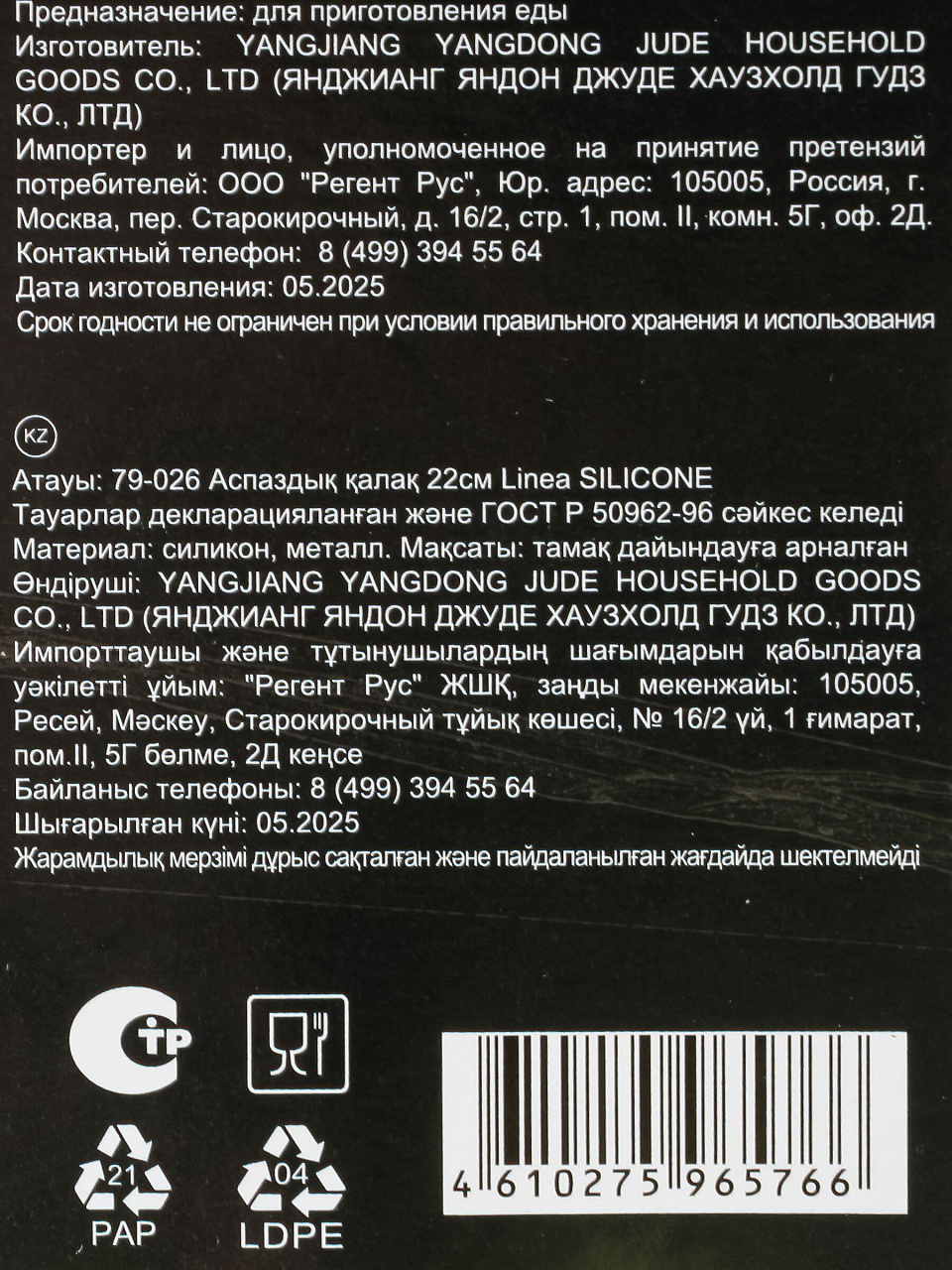 - Удобный размер 22х5 см, прочный пищевой силикон, выдерживает частое мытьё в посудомоечной машине.