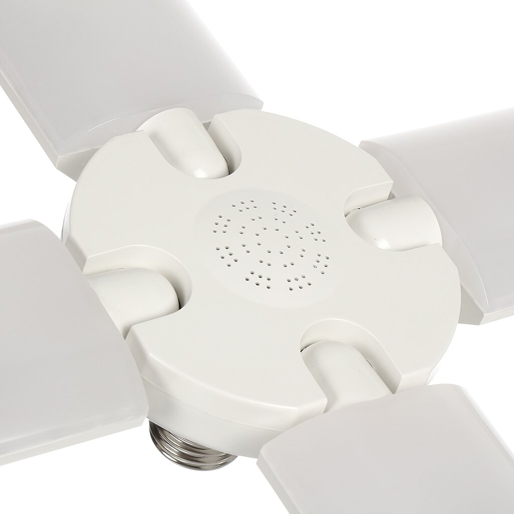 - Раскладная конструкция с 4 лопастями — равномерное распределение света, подходит для высоких потолков и больших площадей
