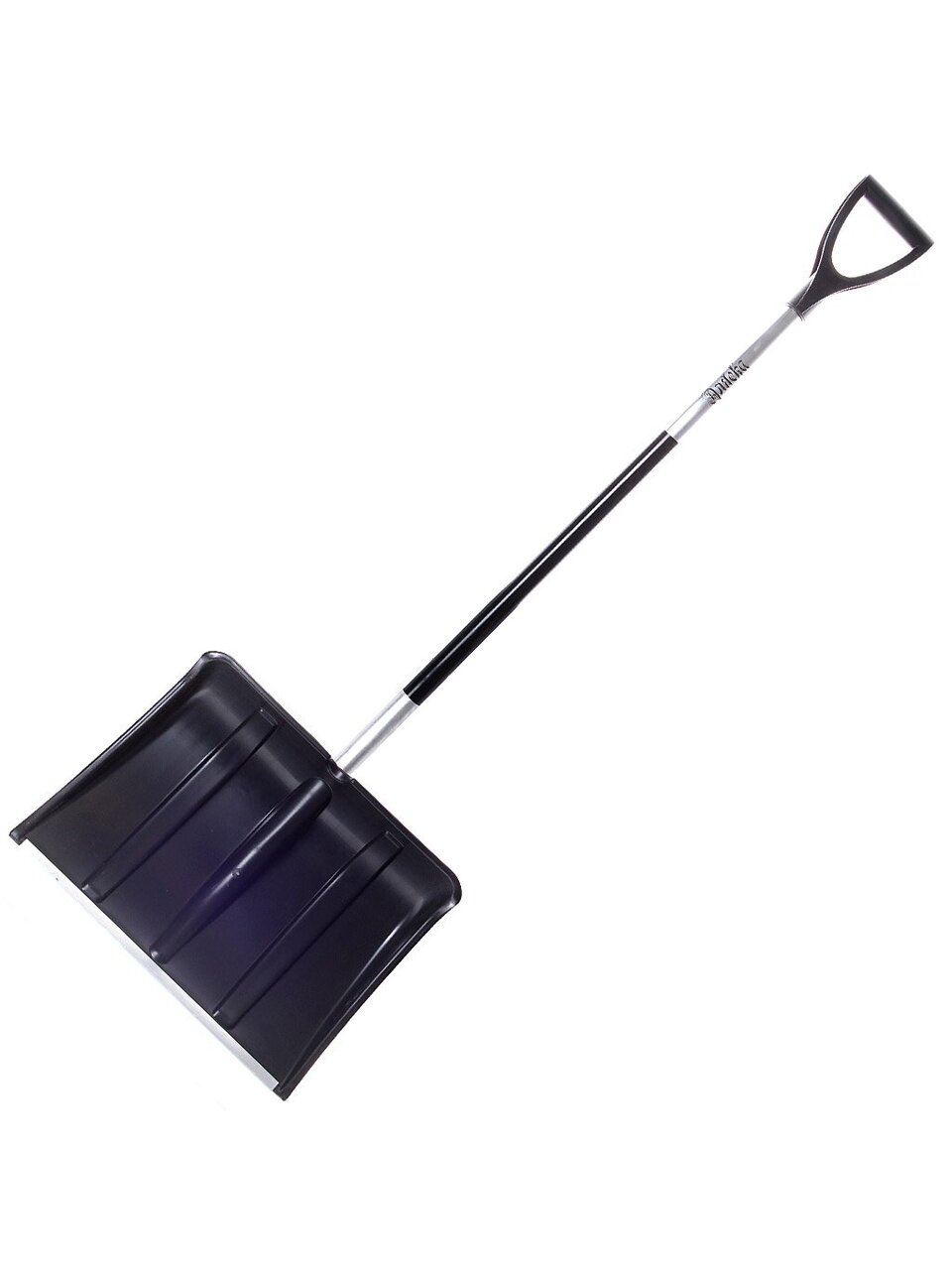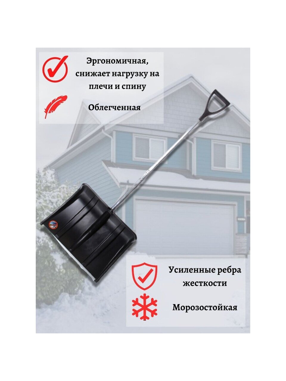 Лопата для снега Инструм-Агро Аляска 100165: легкая уборка снега без усталости — усиленная пластиковая конструкция с алюминиевой планкой, длина 1450 мм.