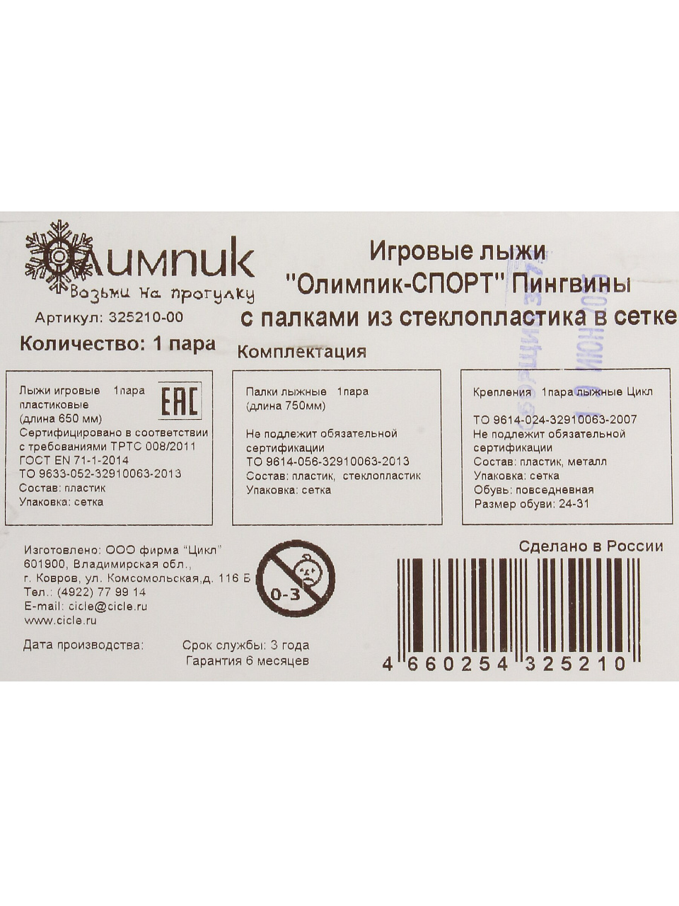Вы можете приобрести «Лыжи для детей, 66 см, с палками, 75 см, универсальное крепление, в сетке, Олимпик-спорт Пингвины, 325210-00» и другие товары в нашем интернет-магазине в Краснодаре по низким ценам и с бесплатным самовывозом.