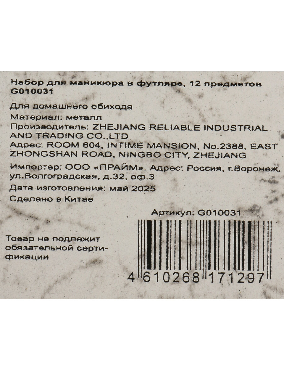 Набор для маникюра,12 пр, в футляре, G010031