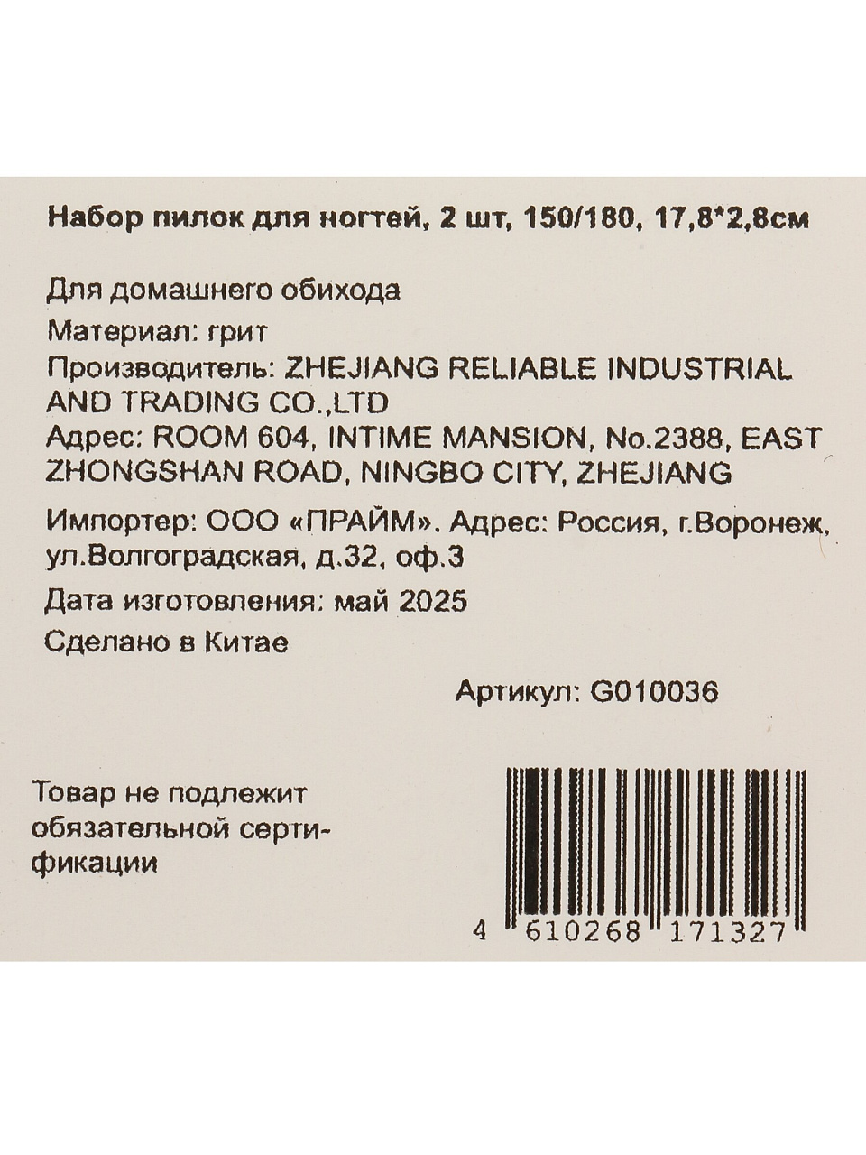 Пилка маникюрная зернистость 150/180, 2 шт, 17.8х2,8см, G020036